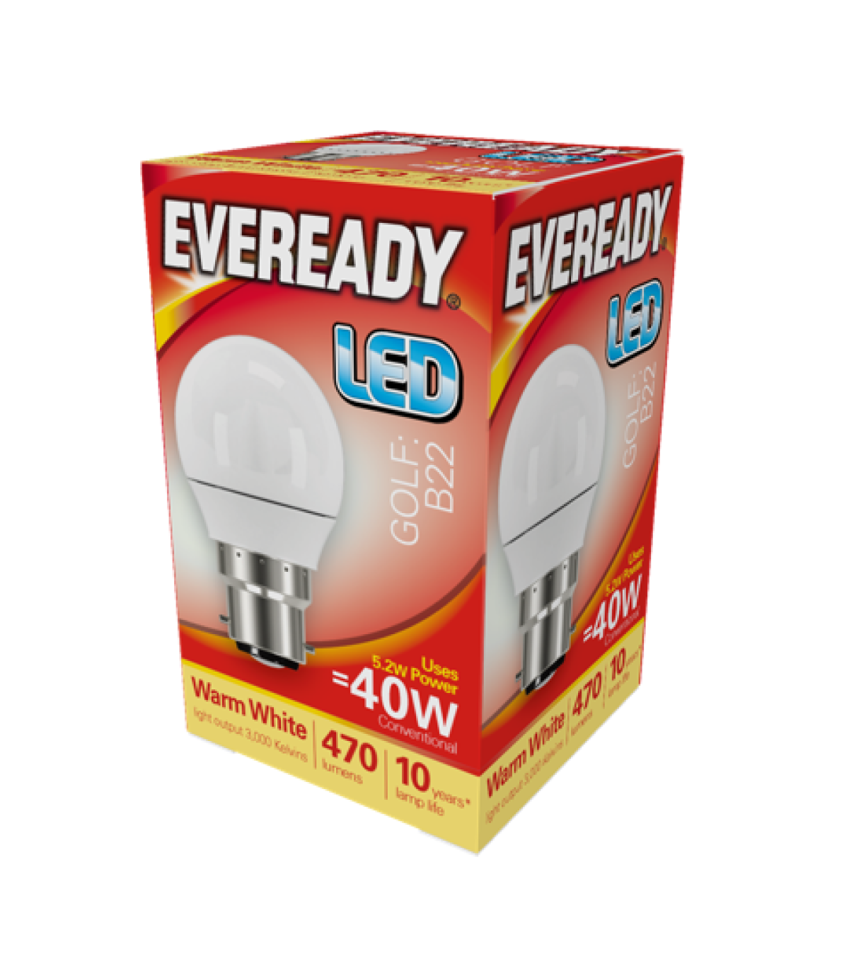 Eveready S13602 LED Golf Bulb 40w B22 (BC) 470lm 4.9W Warm White (Pack of 5) 4.9W / 40W Replacement 470 Lumen 3,000K (Warm White) Non-Dimmable 220-240V Energy Rating F