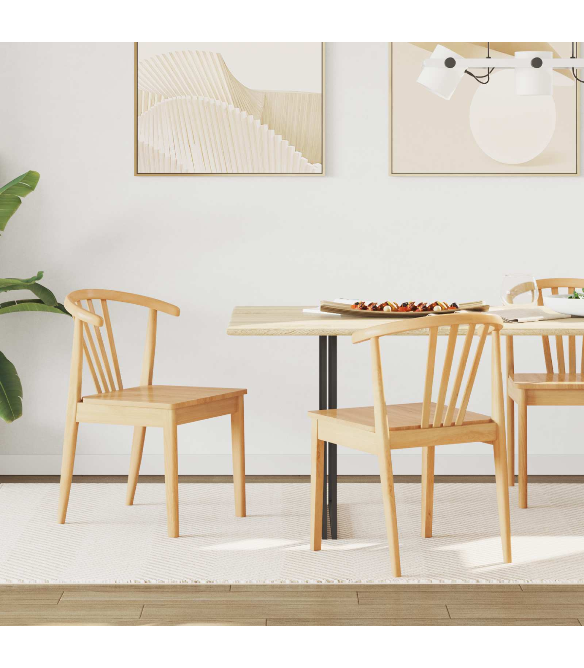 vidaXL Dining Chair 2 pcs Natural Solid Rubberwood