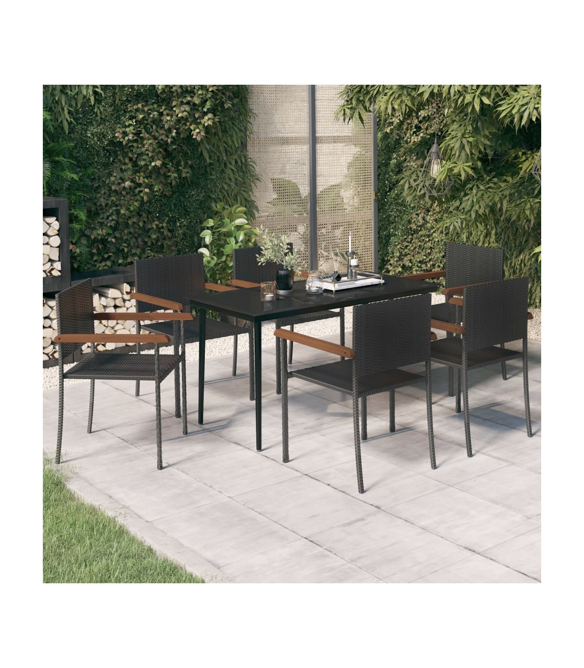 vidaXL 7 Piece Garden Dining Set Black