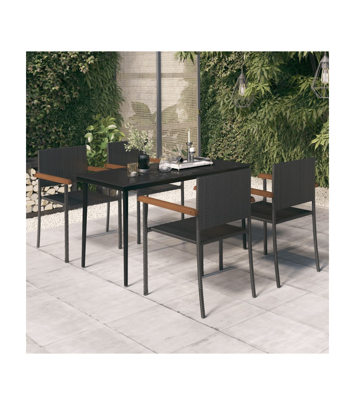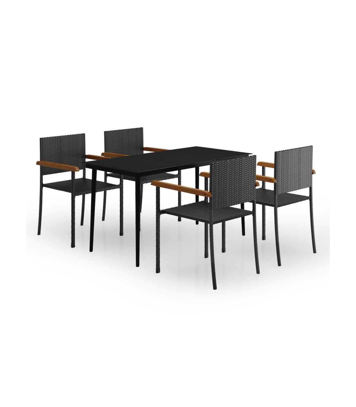 This stylish garden dining set is meant to be the focal point of your garden or patio! It is a great choice for al fresco dining or relaxing in the outdoor space! Durable material: PE rattan, also known as poly rattan, is weather resistant and easy to clean. It remains beautiful on the outside for a long period of time. It offers great quality, convenience and an aesthetic look.Sturdy and stable frame: The powder-coated steel frames make the patio set sturdy and stable for daily outdoor use.Practical tabletop: The smooth tabletop of the dining table is made of tempered glass which is easy to clean with a damp cloth. Additionally, the sturdy tabletop is perfect for placing meals, drinks, and other decorative items.Comfortable seating: The dining chair is designed with a backrest and armrest to offer you a comfortable seating experience. Note:In order to extend the life of your outdoor furniture, we recommend you to protect it with a waterproof cover.Each product comes with an assembly manual in the box for easy assembly.