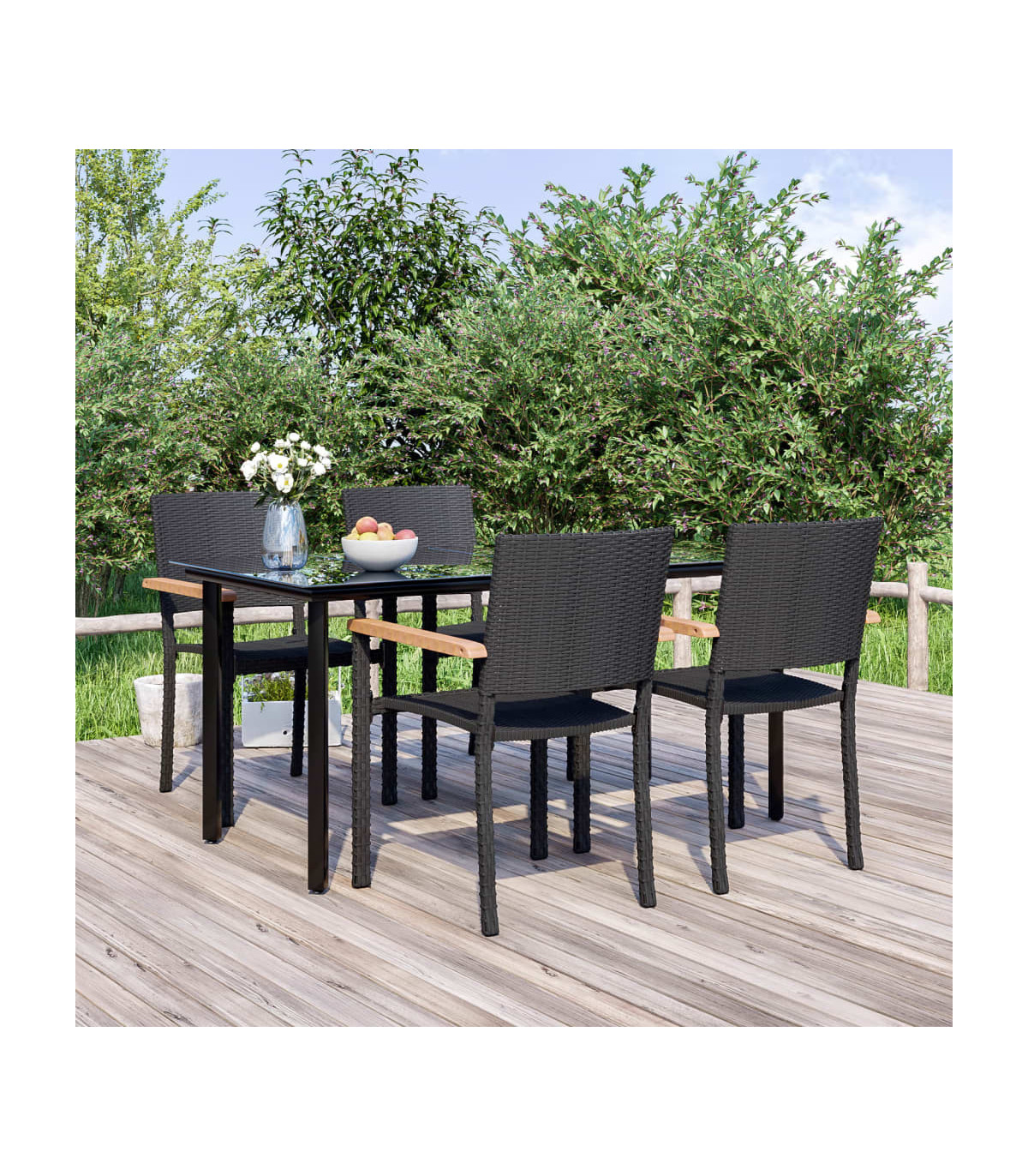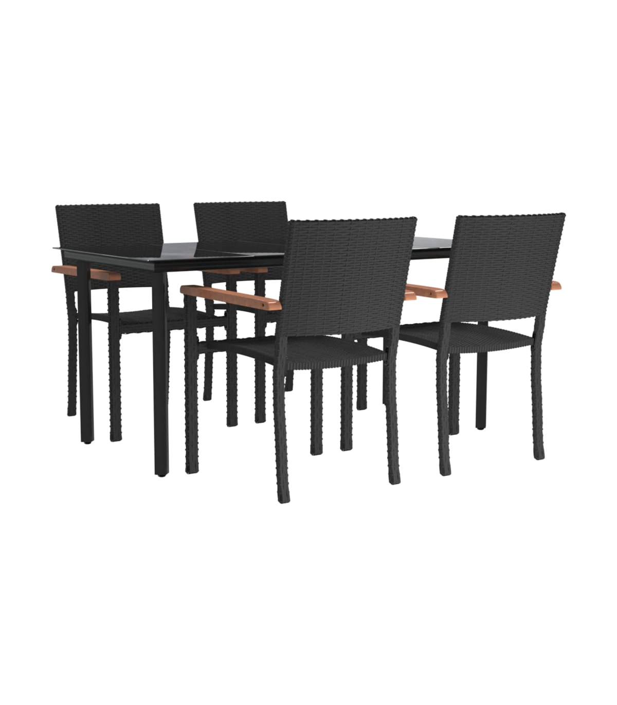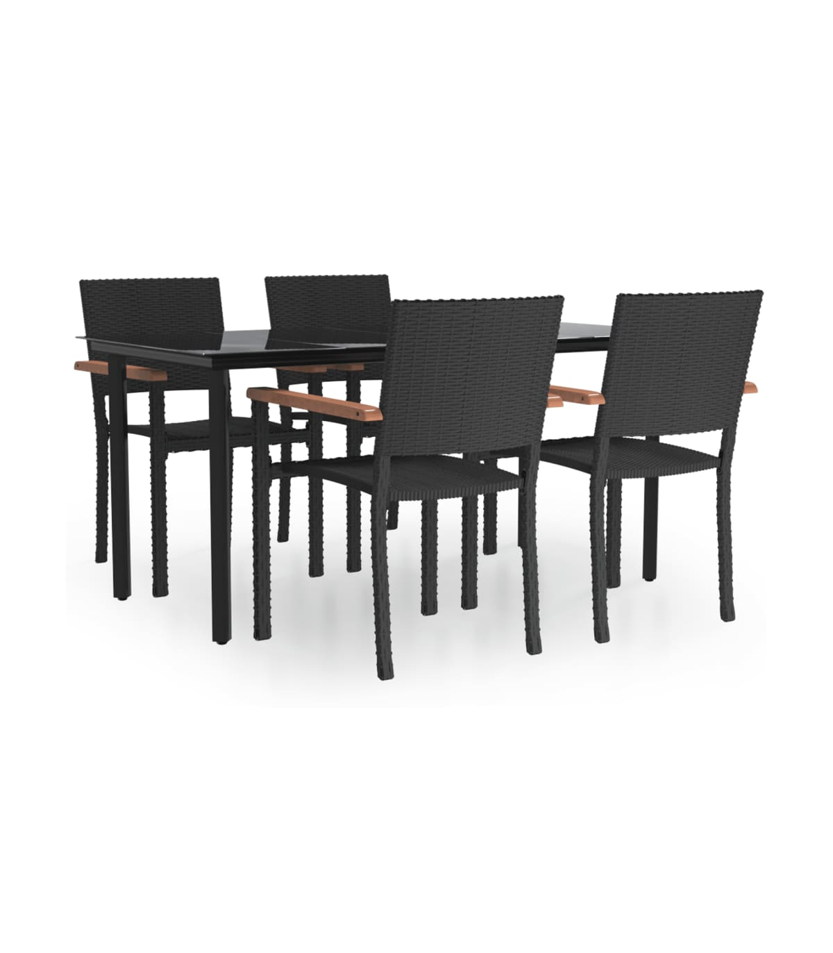 This stylish garden dining set is meant to be the focal point of your garden or patio! It is a great choice for al fresco dining or relaxing in the outdoor space! Durable material: PE rattan, also known as poly rattan, is weather resistant and easy to clean. It remains beautiful on the outside for a long period of time. It offers great quality, convenience and an aesthetic look.Sturdy and stable frame: The powder-coated steel frames make the patio set sturdy and stable for daily outdoor use.Practical tabletop: The smooth tabletop of the dining table is made of tempered glass which is easy to clean with a damp cloth. Additionally, the sturdy tabletop is perfect for placing meals, drinks, and other decorative items.Comfortable seating: The dining chair is designed with a backrest and armrest to offer you a comfortable seating experience. Note:In order to extend the life of your outdoor furniture, we recommend you to protect it with a waterproof cover.Each product comes with an assembly manual in the box for easy assembly.