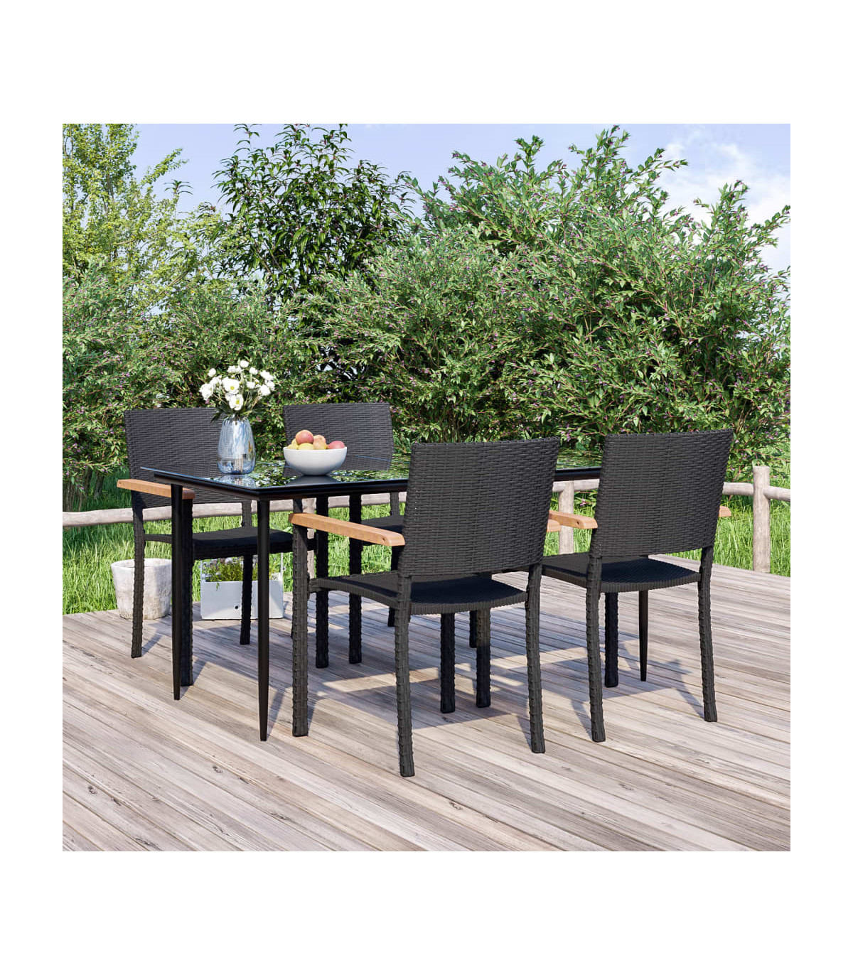 vidaXL 5 Piece Garden Dining Set Black Poly Rattan