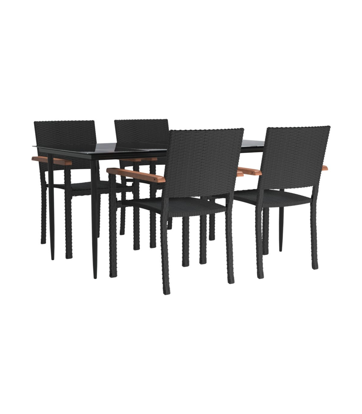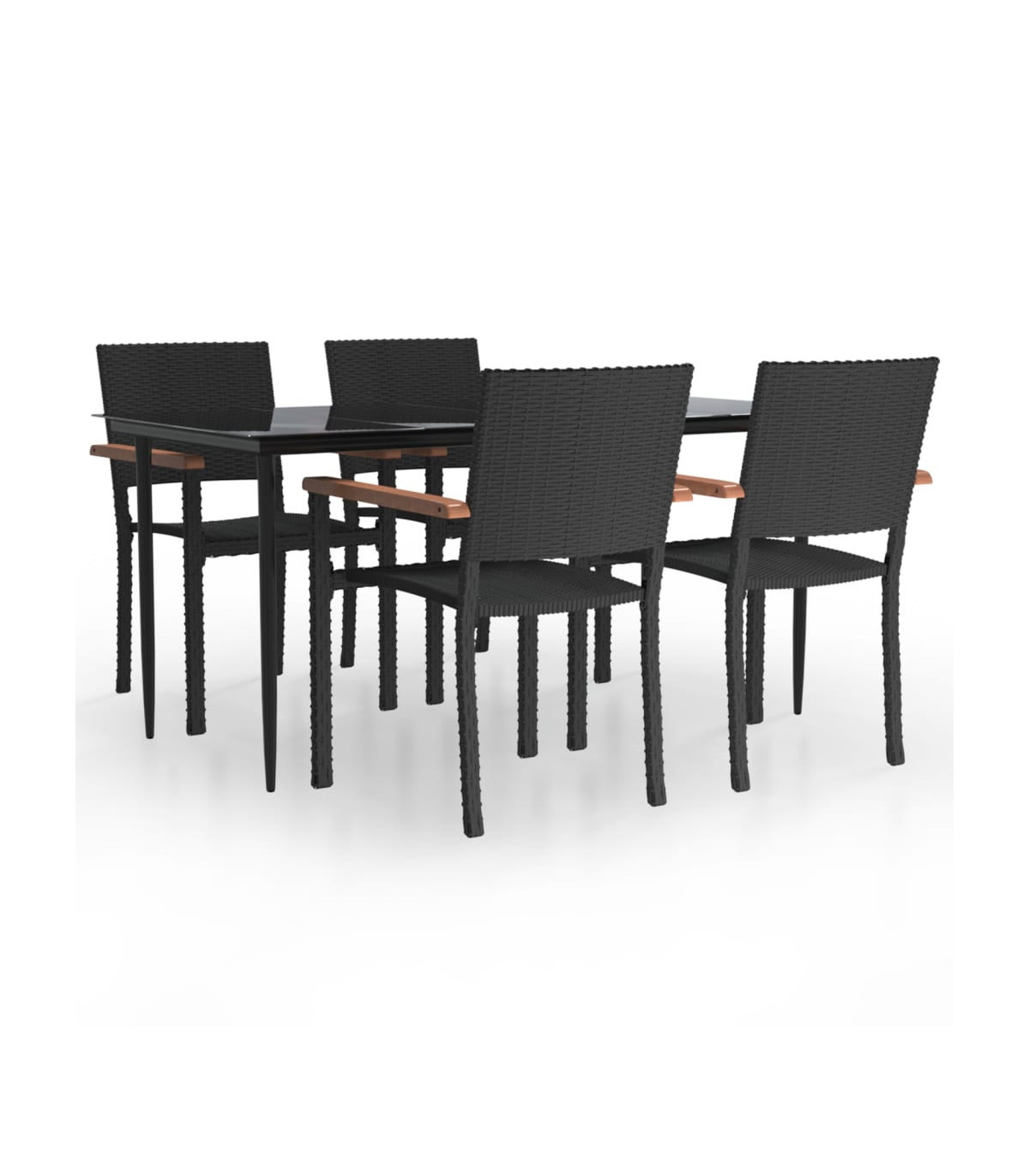 This stylish garden dining set is meant to be the focal point of your garden or patio! It is a great choice for al fresco dining or relaxing in the outdoor space! Durable material: PE rattan, also known as poly rattan, is weather resistant and easy to clean. It remains beautiful on the outside for a long period of time. It offers great quality, convenience and an aesthetic look.Sturdy and stable frame: The powder-coated steel frames make the patio set sturdy and stable for daily outdoor use.Practical tabletop: The smooth tabletop of the dining table is made of tempered glass which is easy to clean with a damp cloth. Additionally, the sturdy tabletop is perfect for placing meals, drinks, and other decorative items.Comfortable seating: The dining chair is designed with a backrest and armrest to offer you a comfortable seating experience. Note:In order to extend the life of your outdoor furniture, we recommend you to protect it with a waterproof cover.Each product comes with an assembly manual in the box for easy assembly.