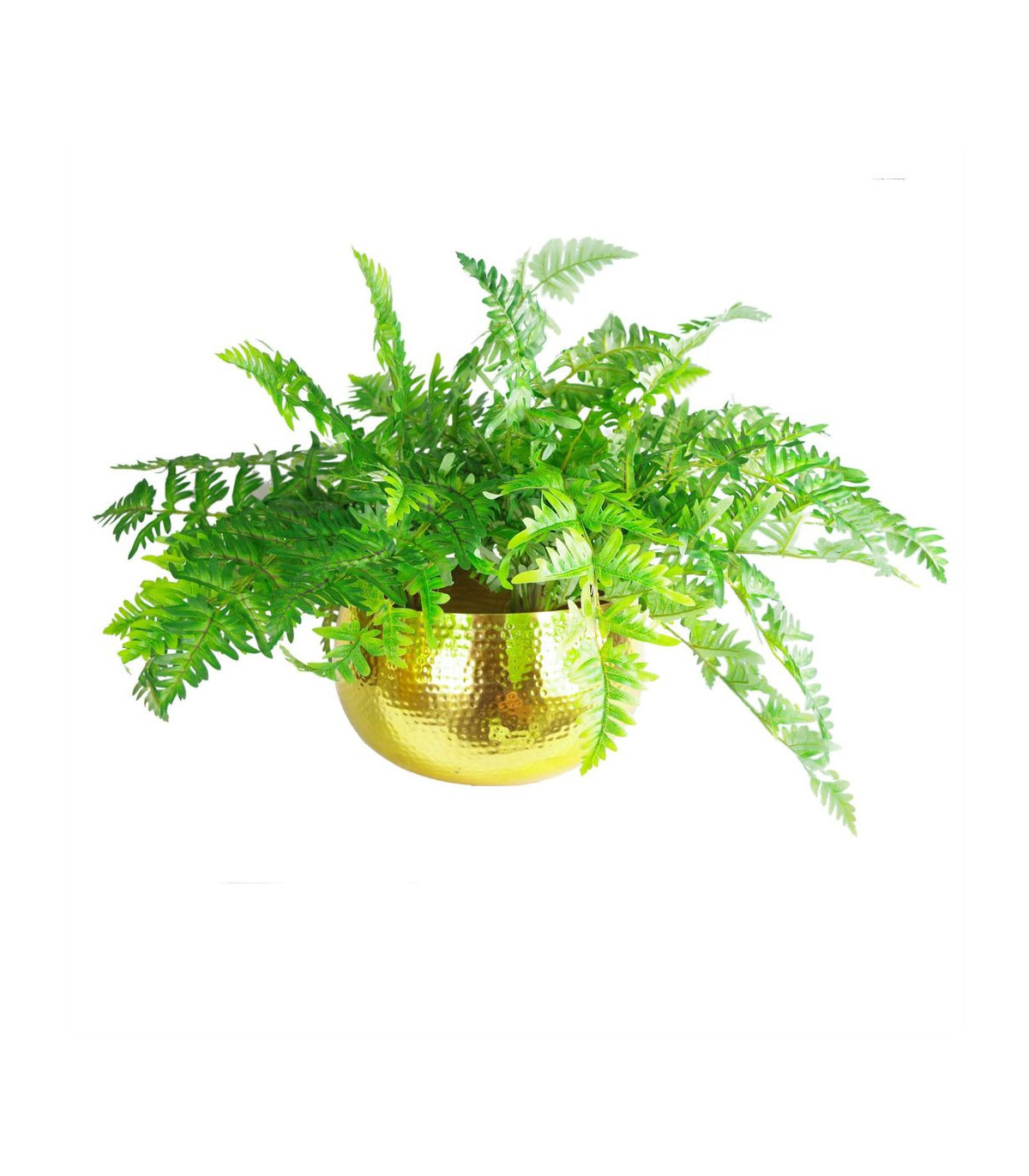 Metal bowl with a hammered brass finish.