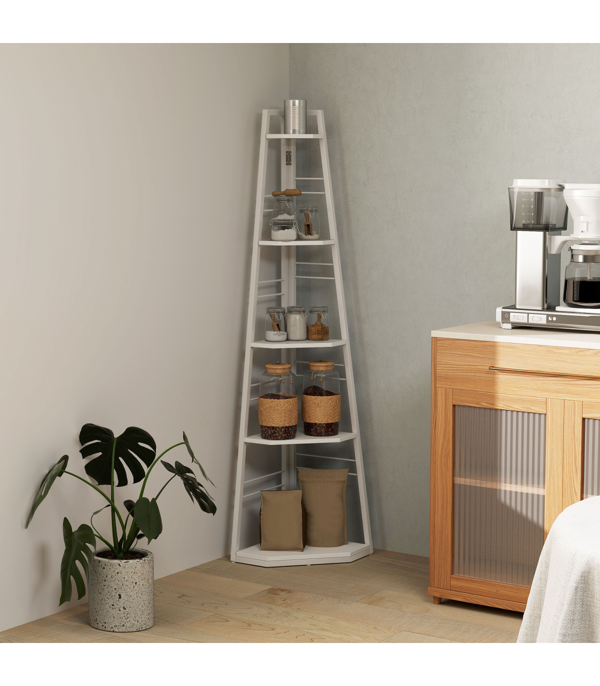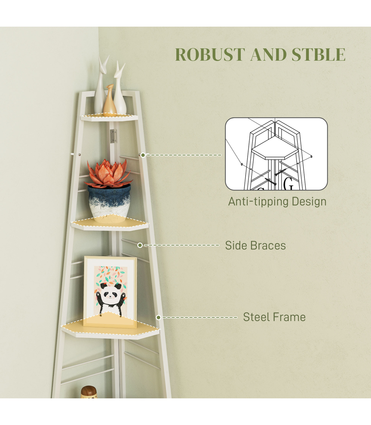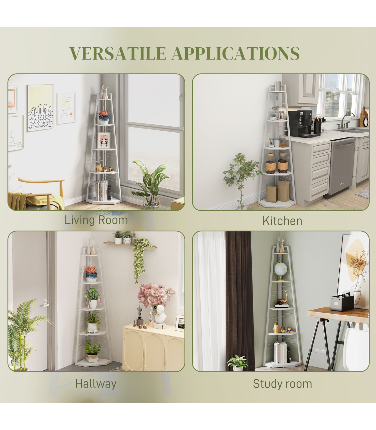 ● Five shelves: plenty of room for books, flowers, photos, ornaments and more
