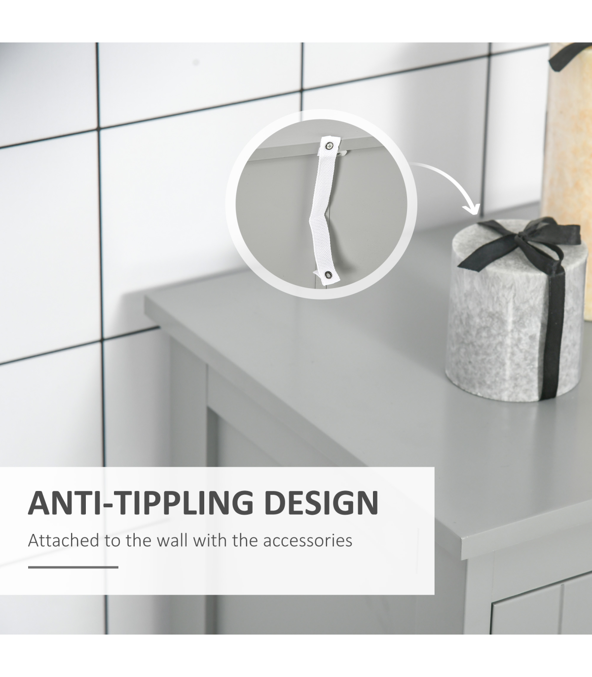 Maximise space and reduce clutter with this modern bathroom cabinet from kleankin. Made from robust MDF with a sleek design, it's suitable for the bathroom, kitchen, or living room. With lots of storage for towels and toiletries, it's great for shared spaces and includes an anti-tip strap for added safety.