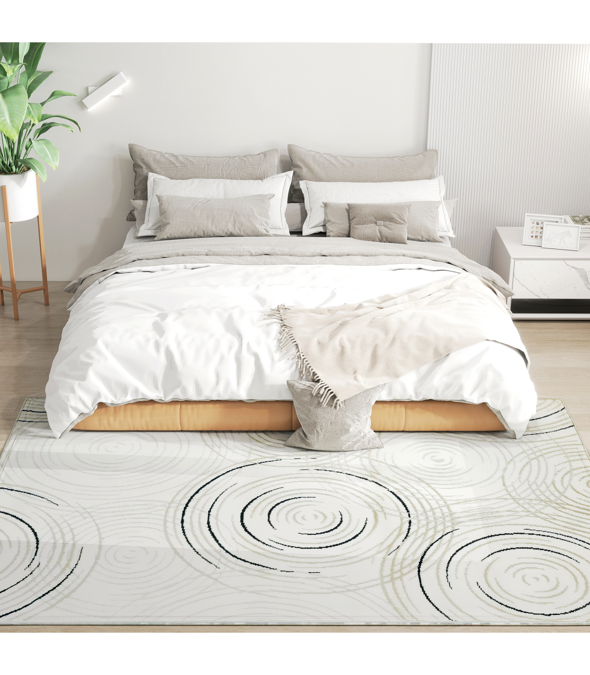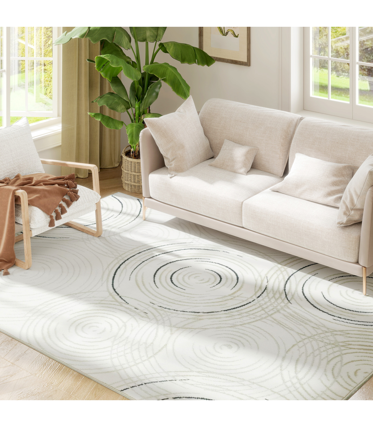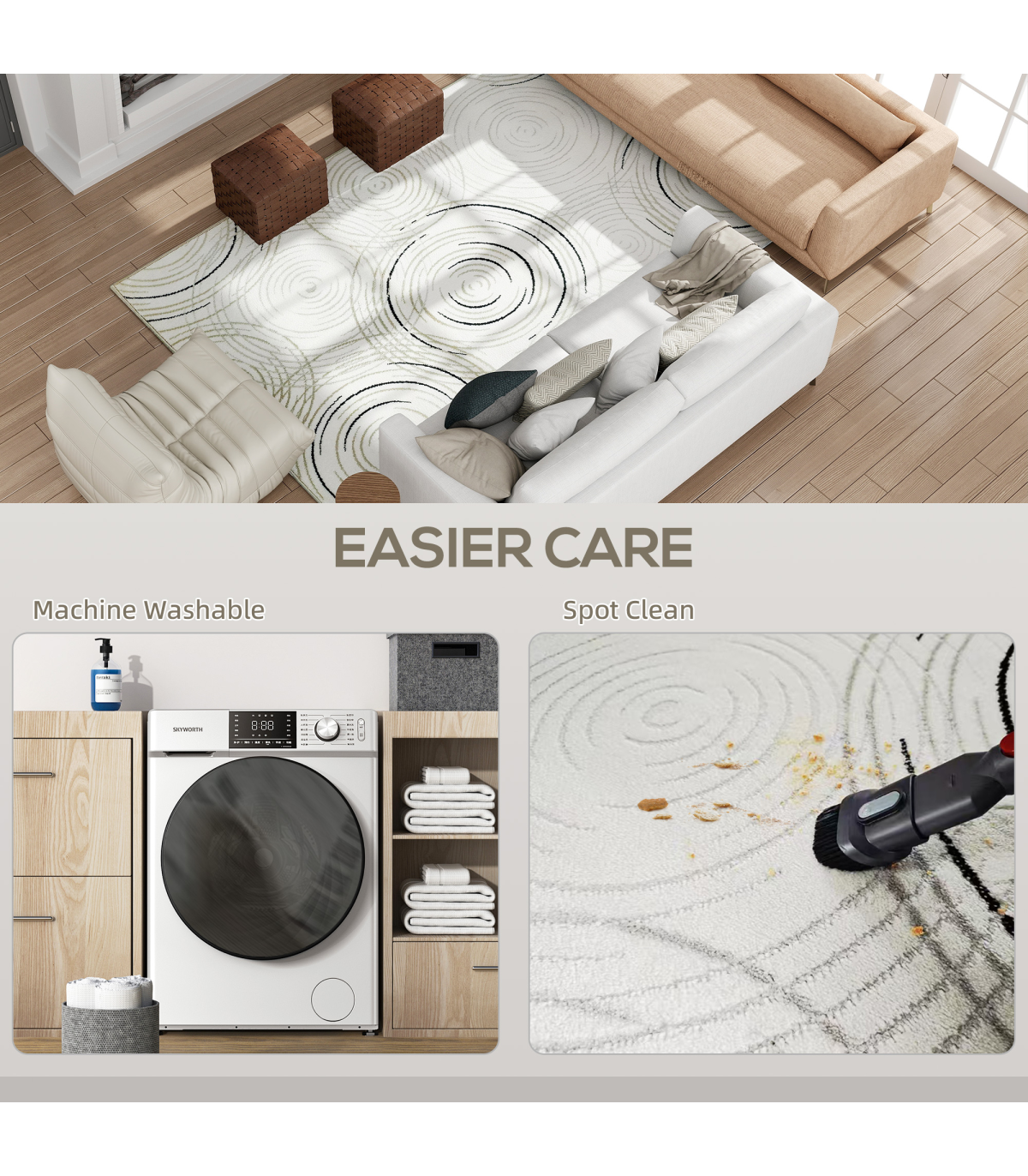 HOMCOM Swirl Pattern Washable Rug, Allergy-Friendly Floor Carpet, Cream