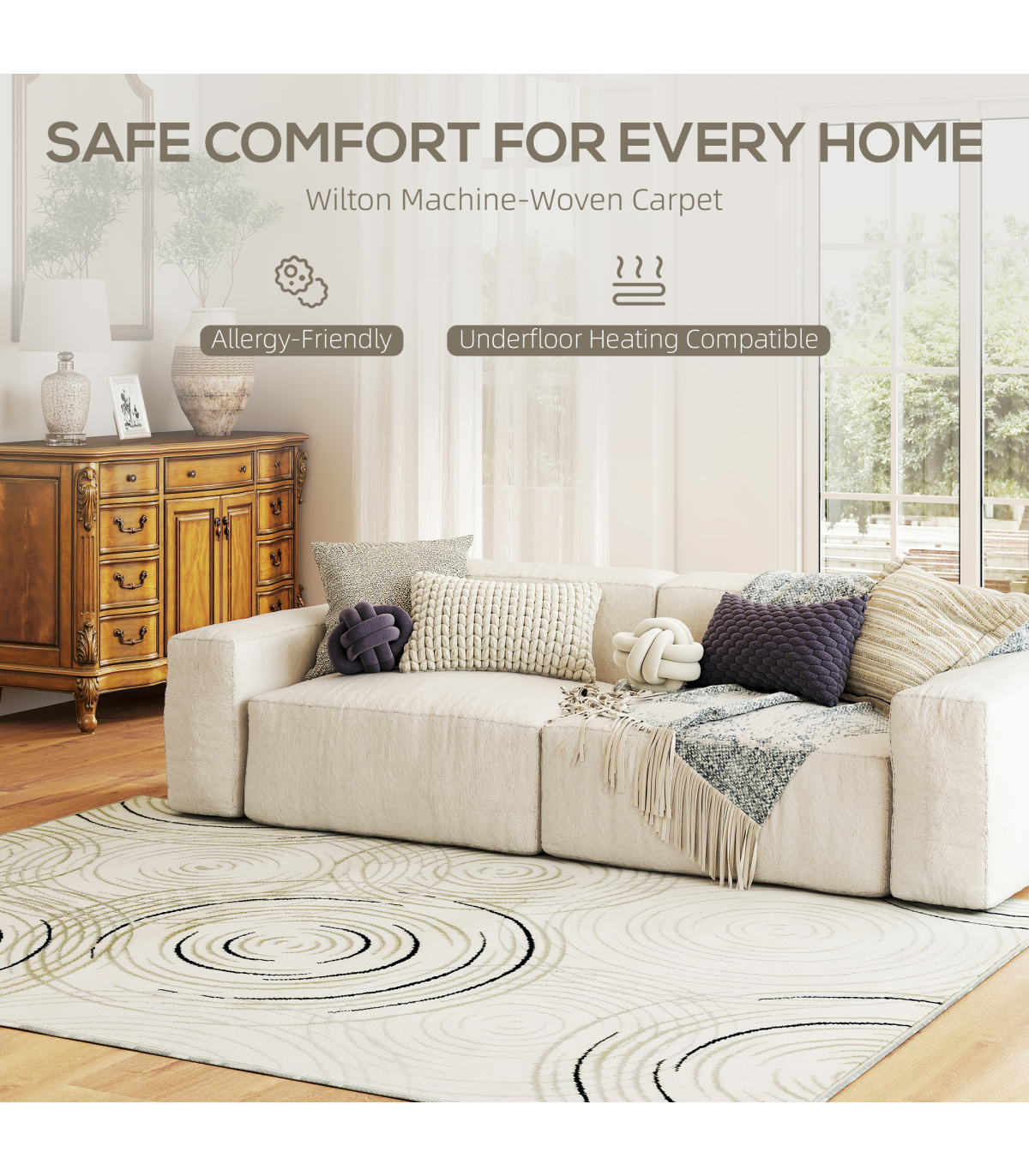 Step onto style with the HOMCOM large rug, masterfully woven with a swirl pattern that adds dynamism to any room. This polypropylene bedroom rug is a haven for allergy sufferers and works seamlessly with underfloor heating. Whether it's for your living room, bedroom, or hallway, keep it clean with a simple machine wash or a wipe with a damp cloth.