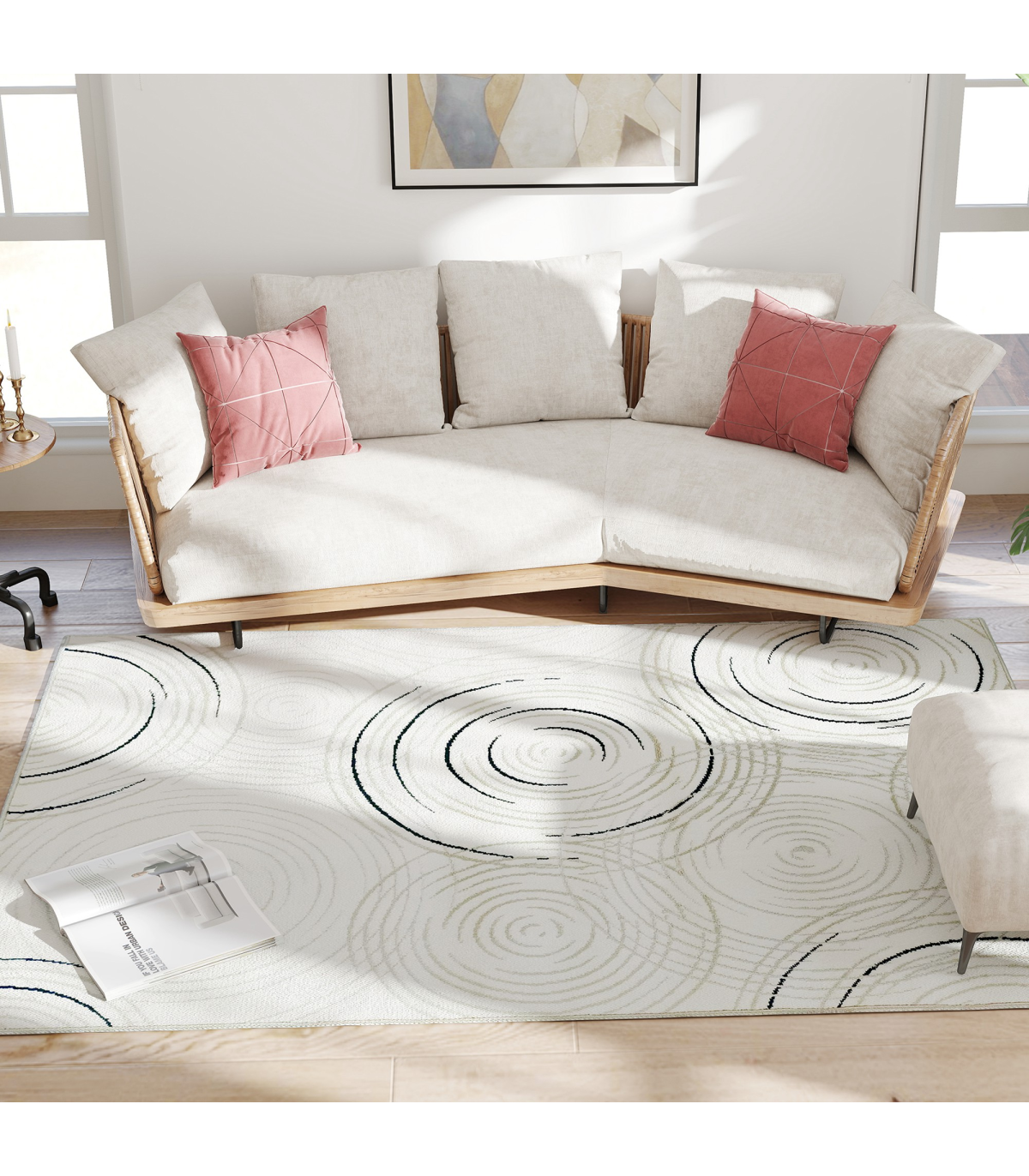 ● Wilton machine-woven carpet adds dynamism with a swirl pattern