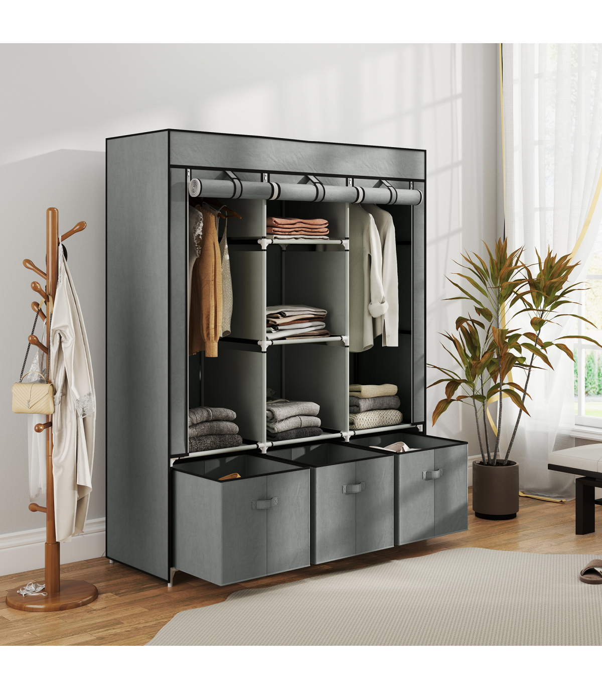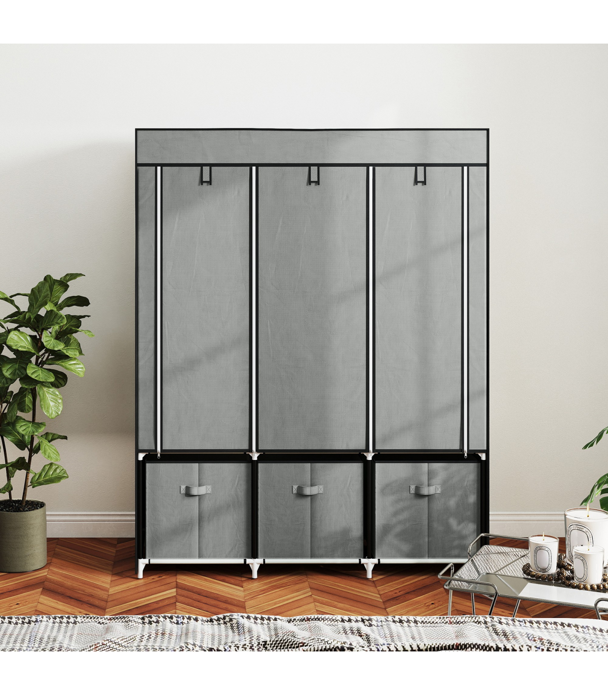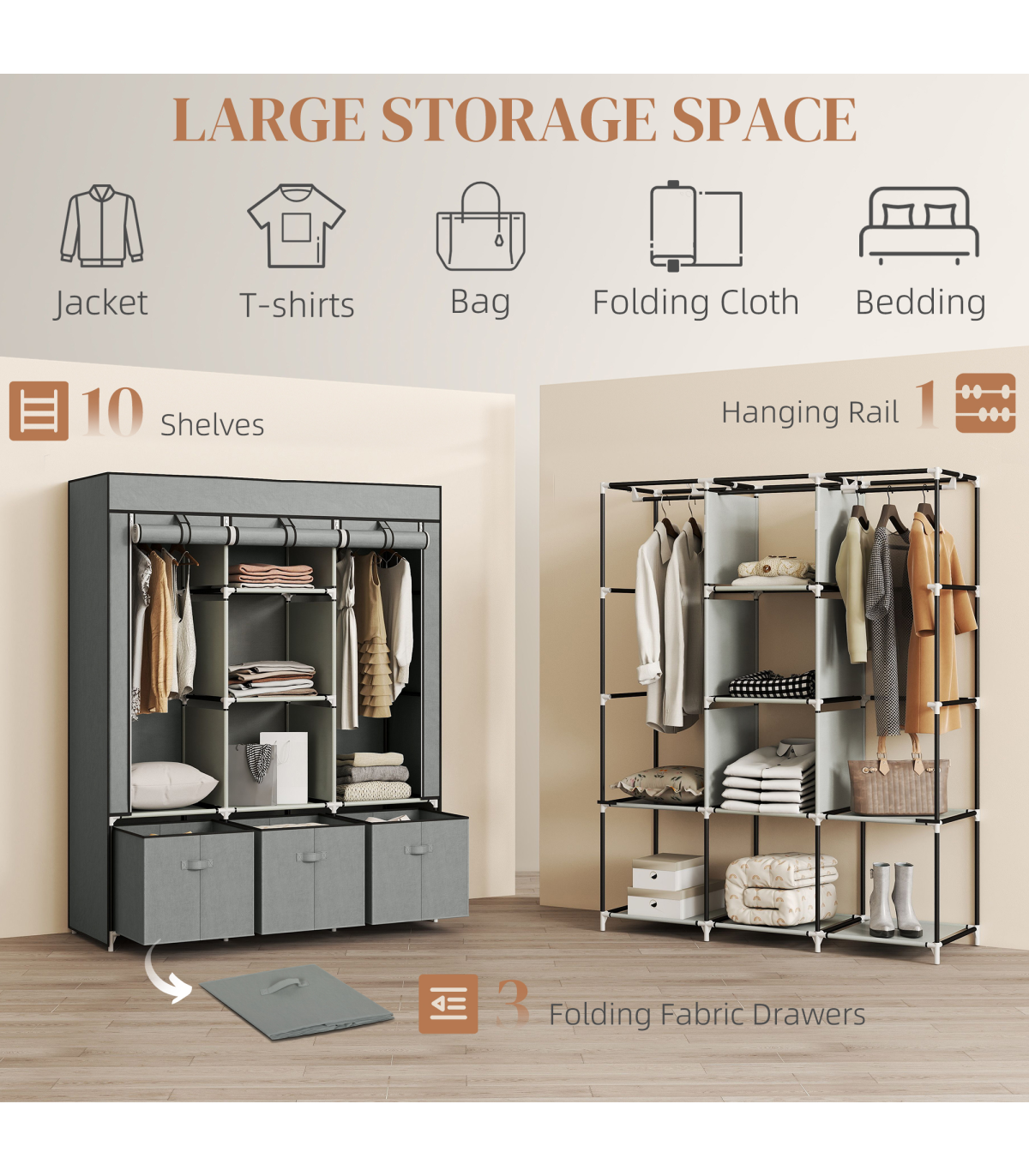 ● Fabric cover protects clothes from dust