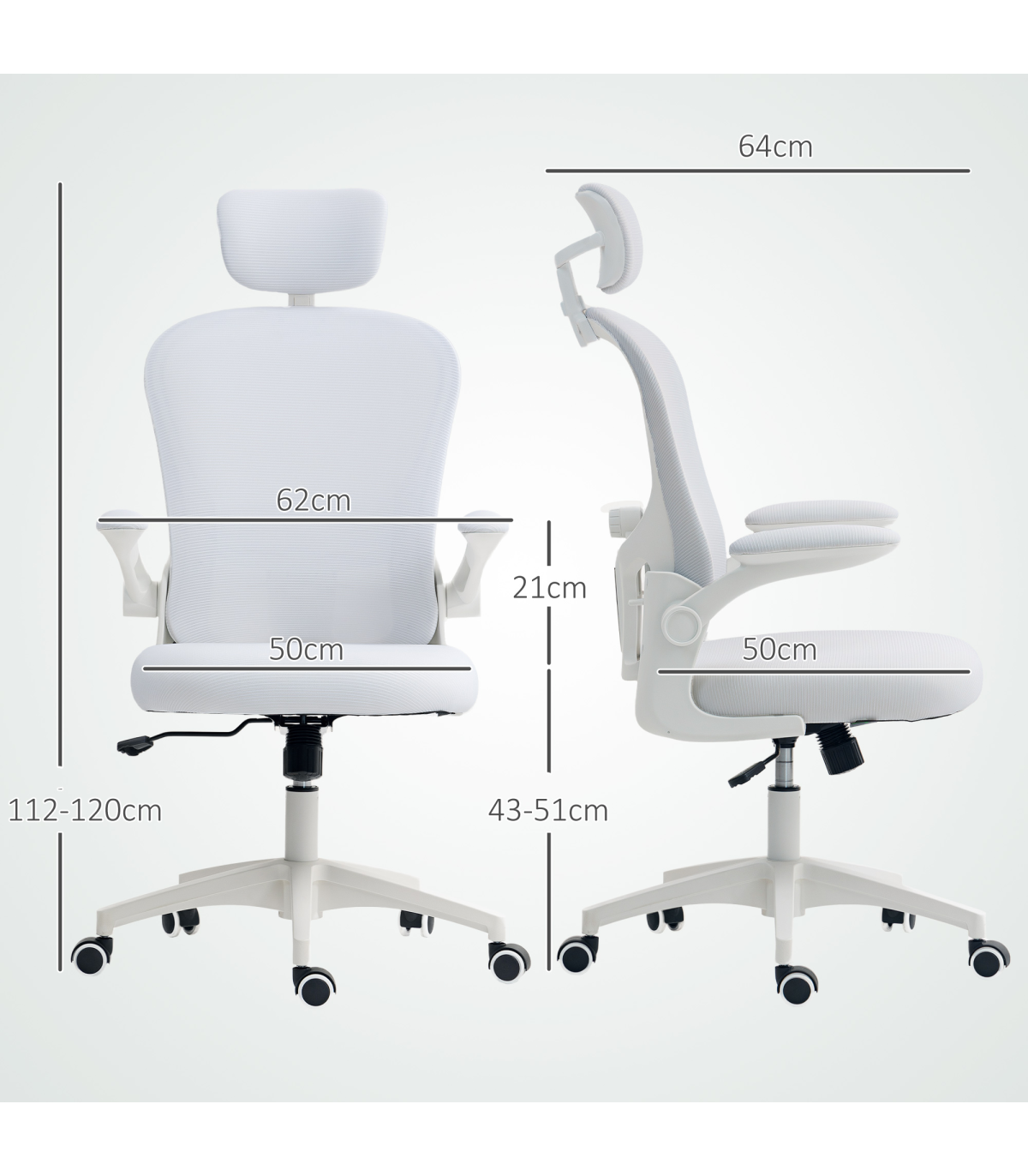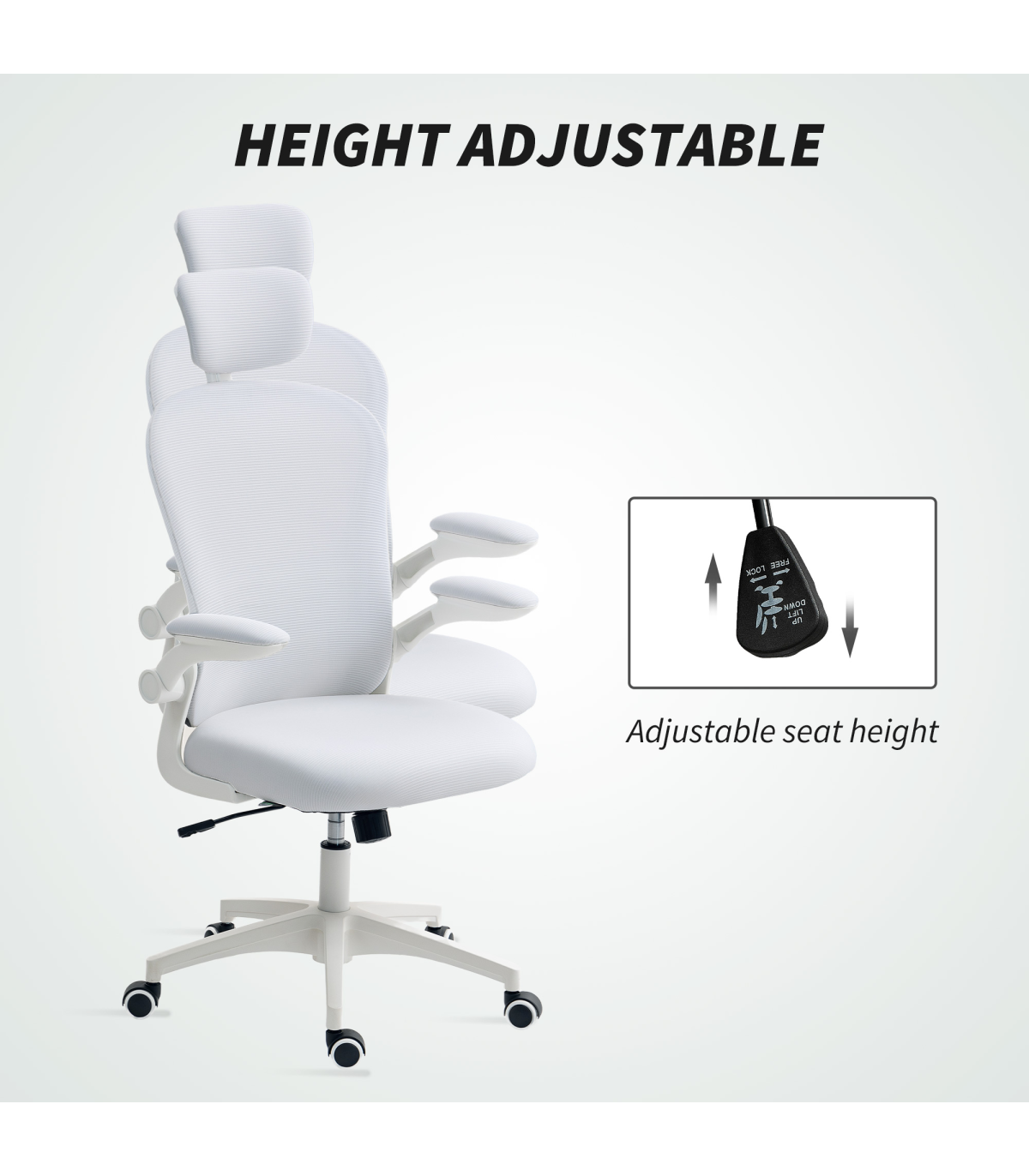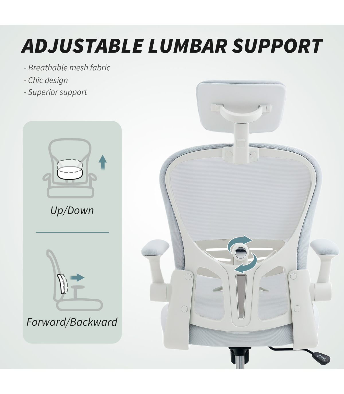 Vinsetto Mesh Chair with Headrest, 4D Lumbar Support, Flip-up Arm, White