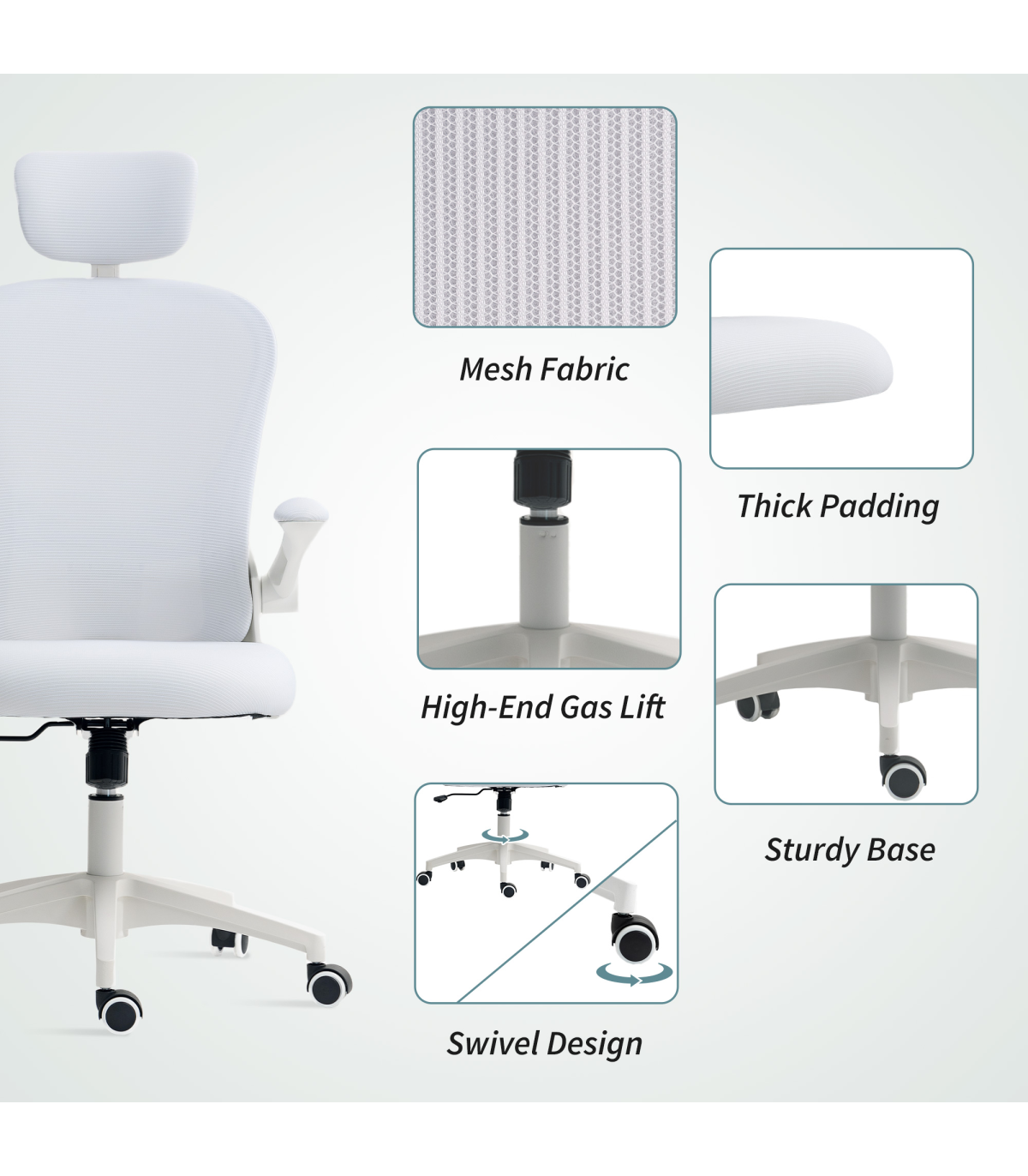 ● Five wheels: chair moves around easily on different floors and surfaces