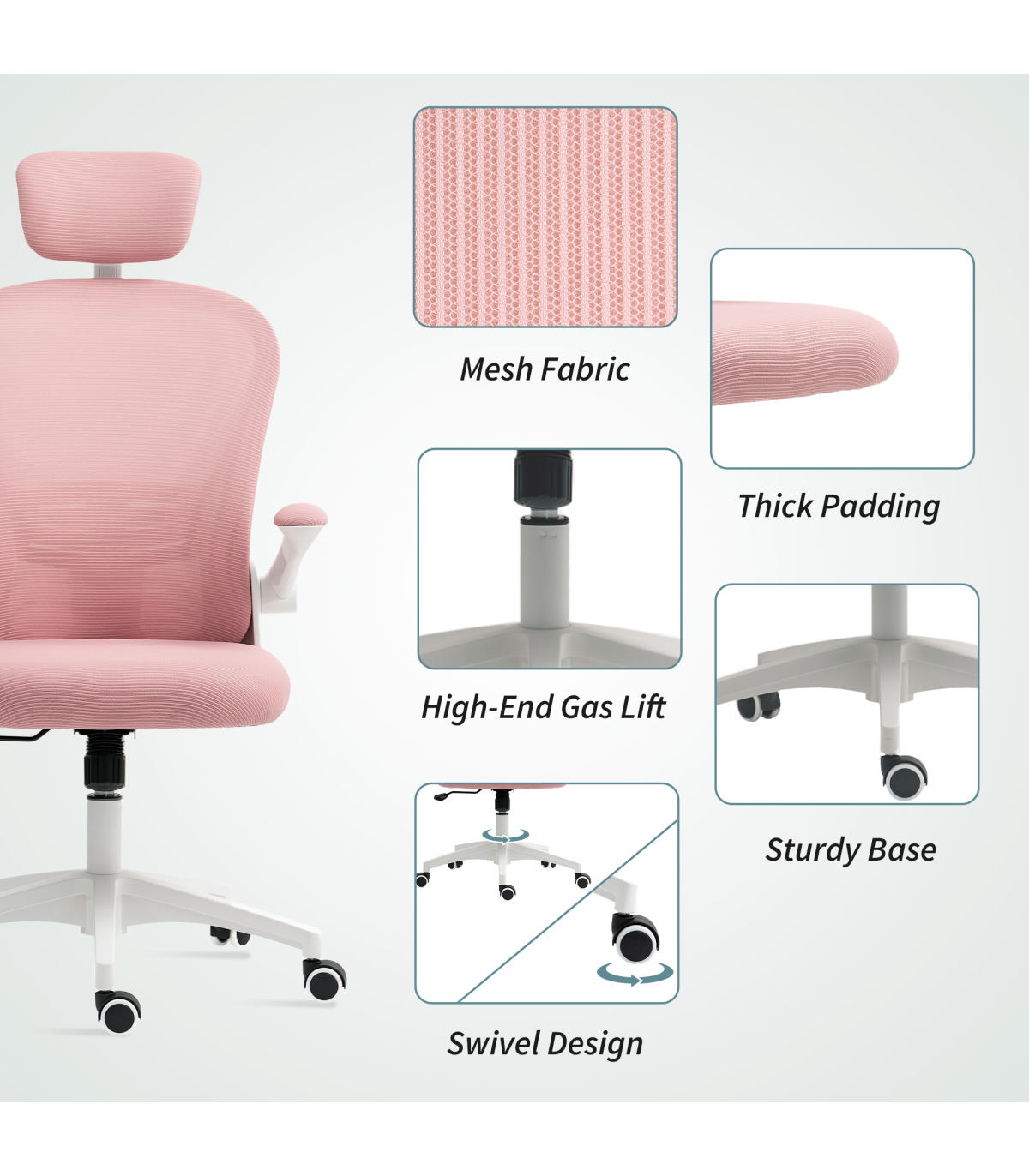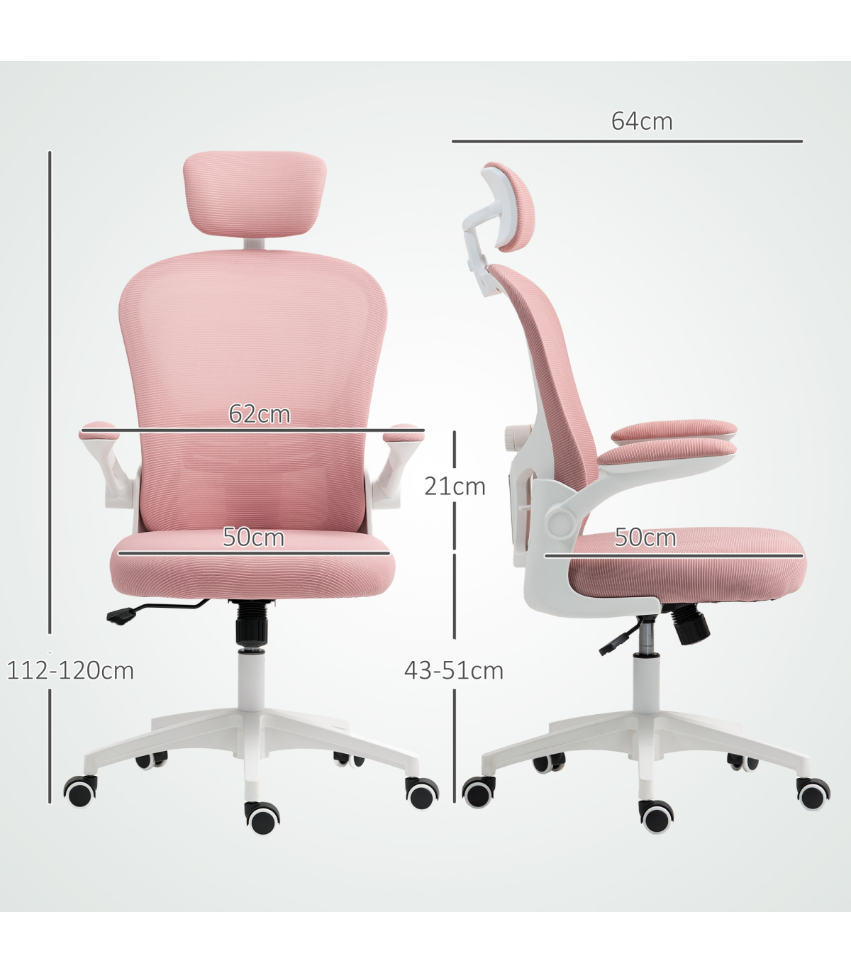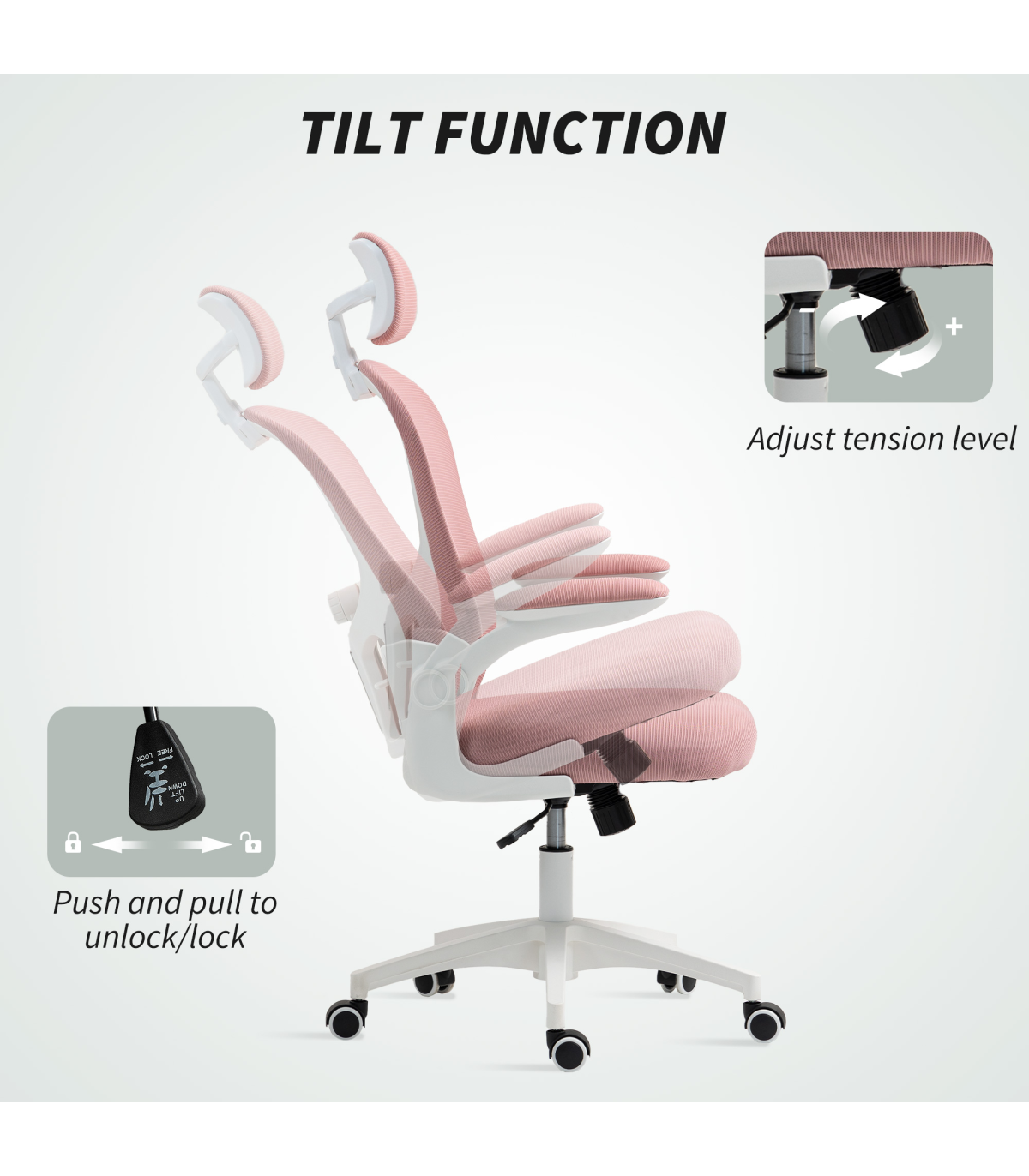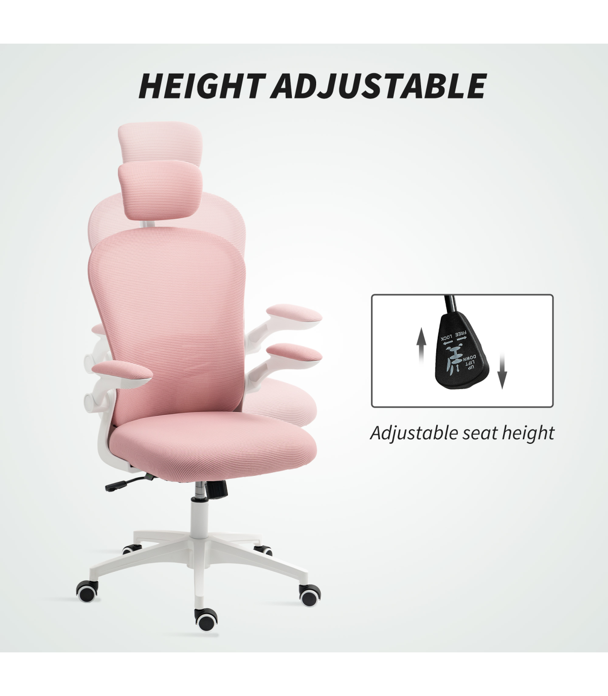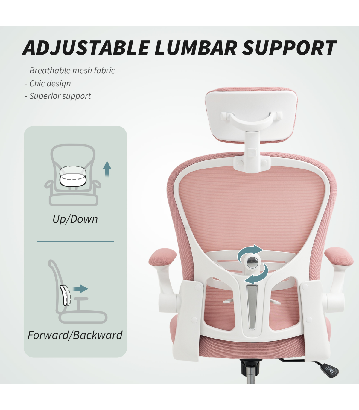 Vinsetto Mesh Chair with Headrest, 4D Lumbar Support, Flip-up Arm, Pink