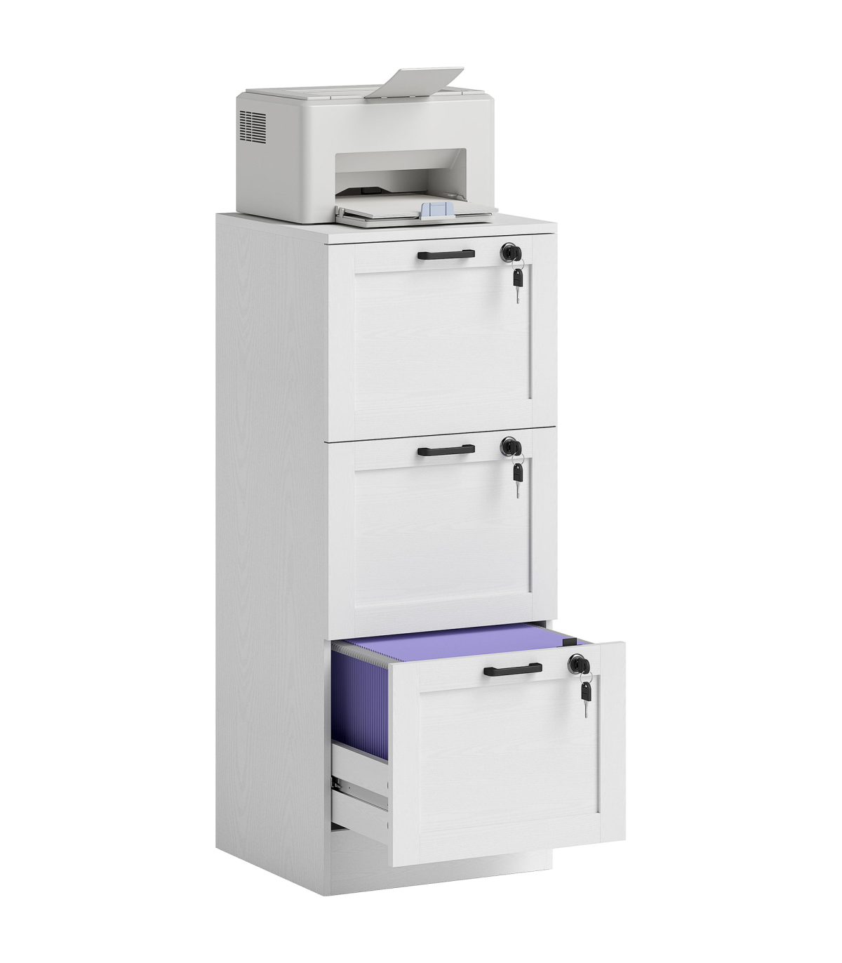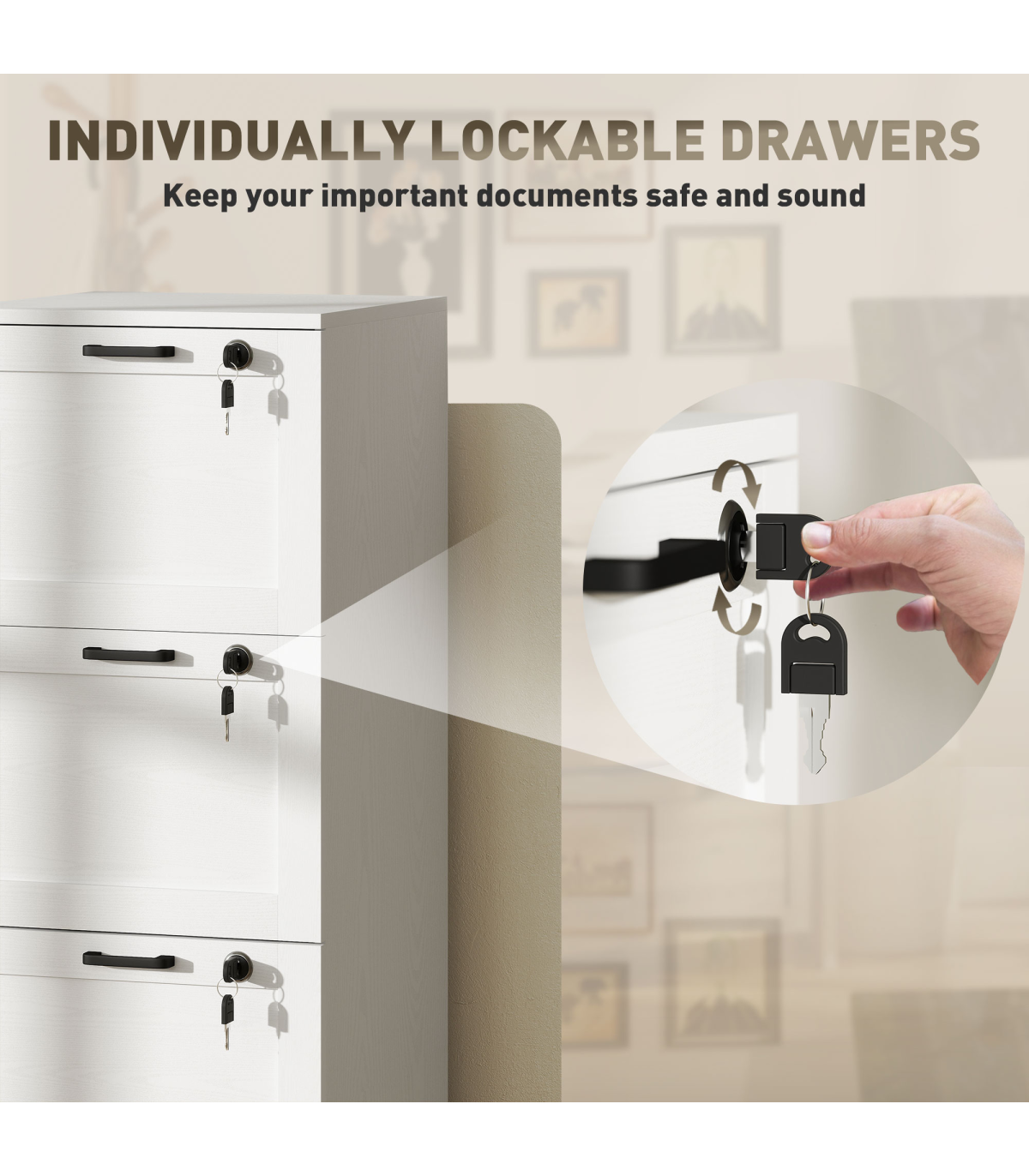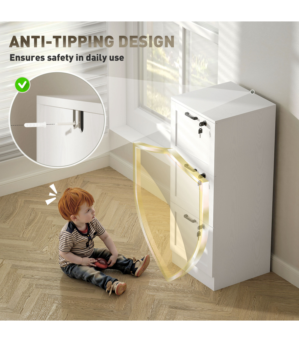 HOMCOM 3-Drawer File Cabinet, Lockable Filing Cabinet for A4 Letter, White