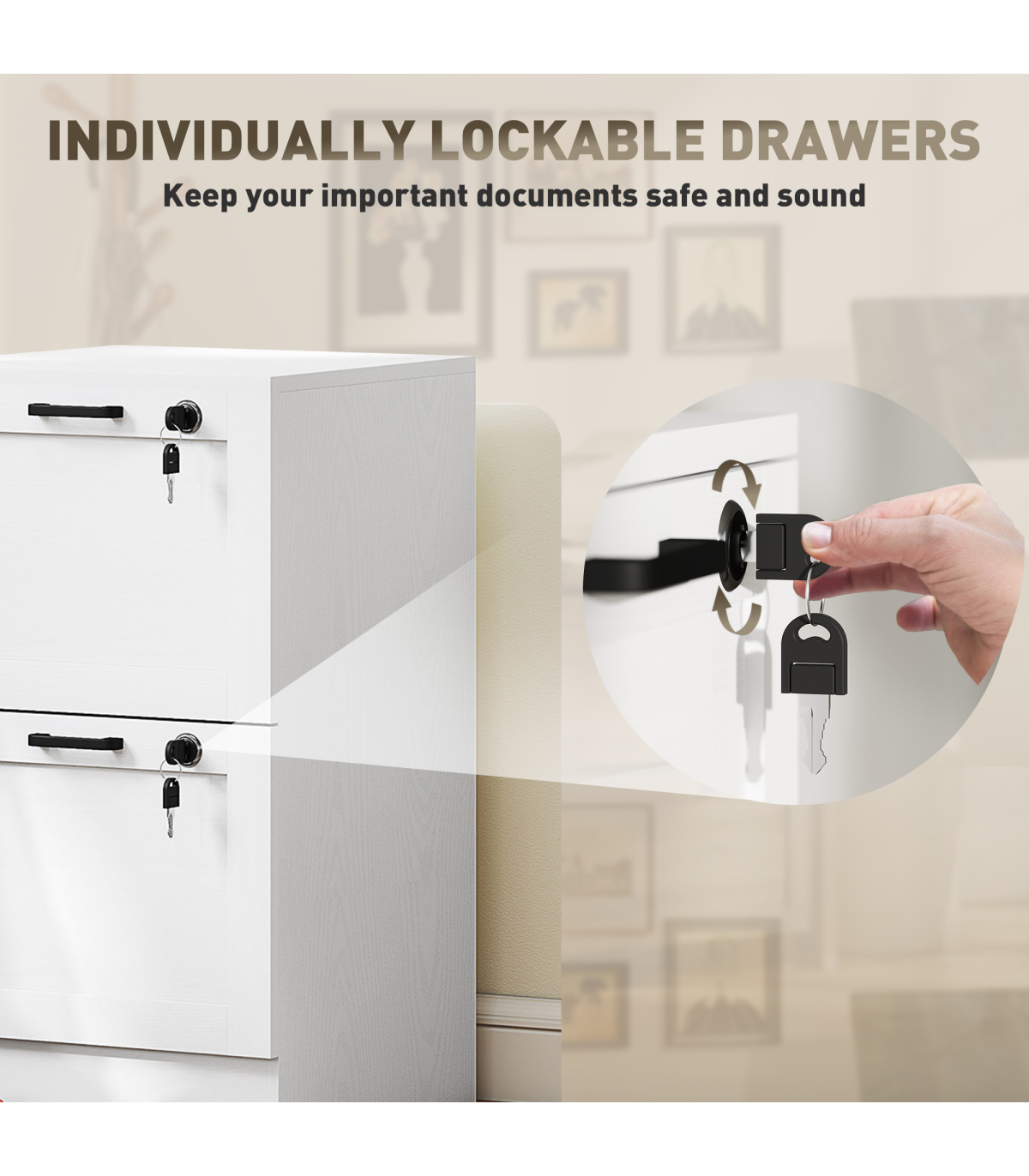 ● Adjustable hanging rail in each drawer accommodates A4 and letter file sizes