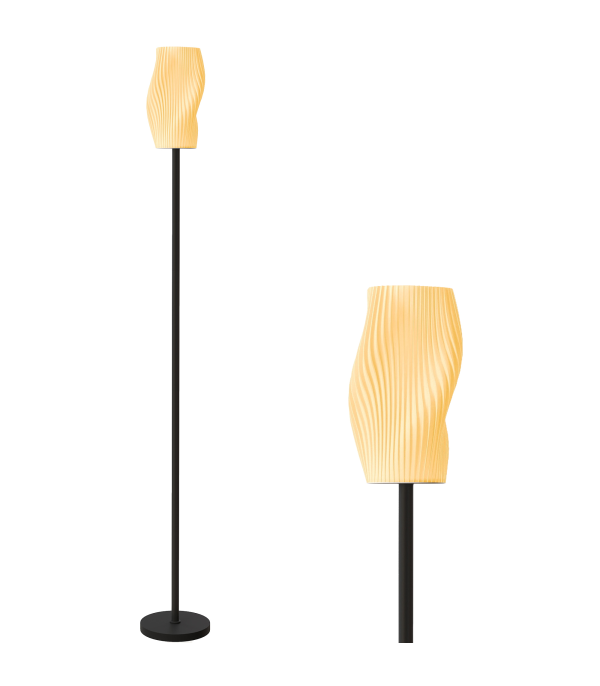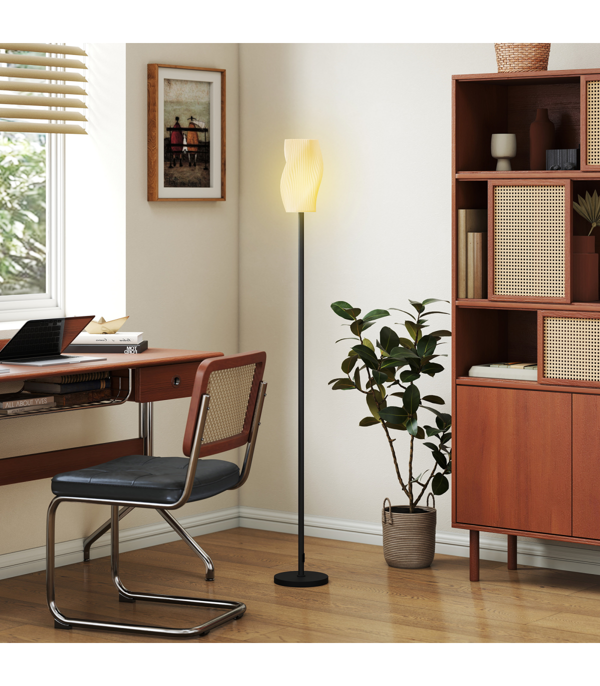 ● 3D-printed lampshade with flowing curves enhances room aesthetics