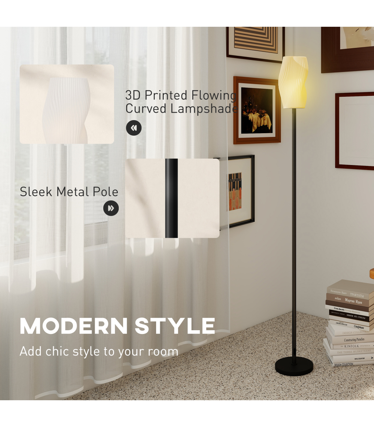 Light up your space with elegance with the HOMCOM floor lamp, featuring a stunning 3D-printed lampshade with flowing curves. This standard lamp comes with a convenient foot switch and adjustable colour temperatures of 3000K, 4000K and 6000K, which is great for creating a cosy ambiance. Its chic design elevates any room, making it a stylish choice for a standing lamp.
