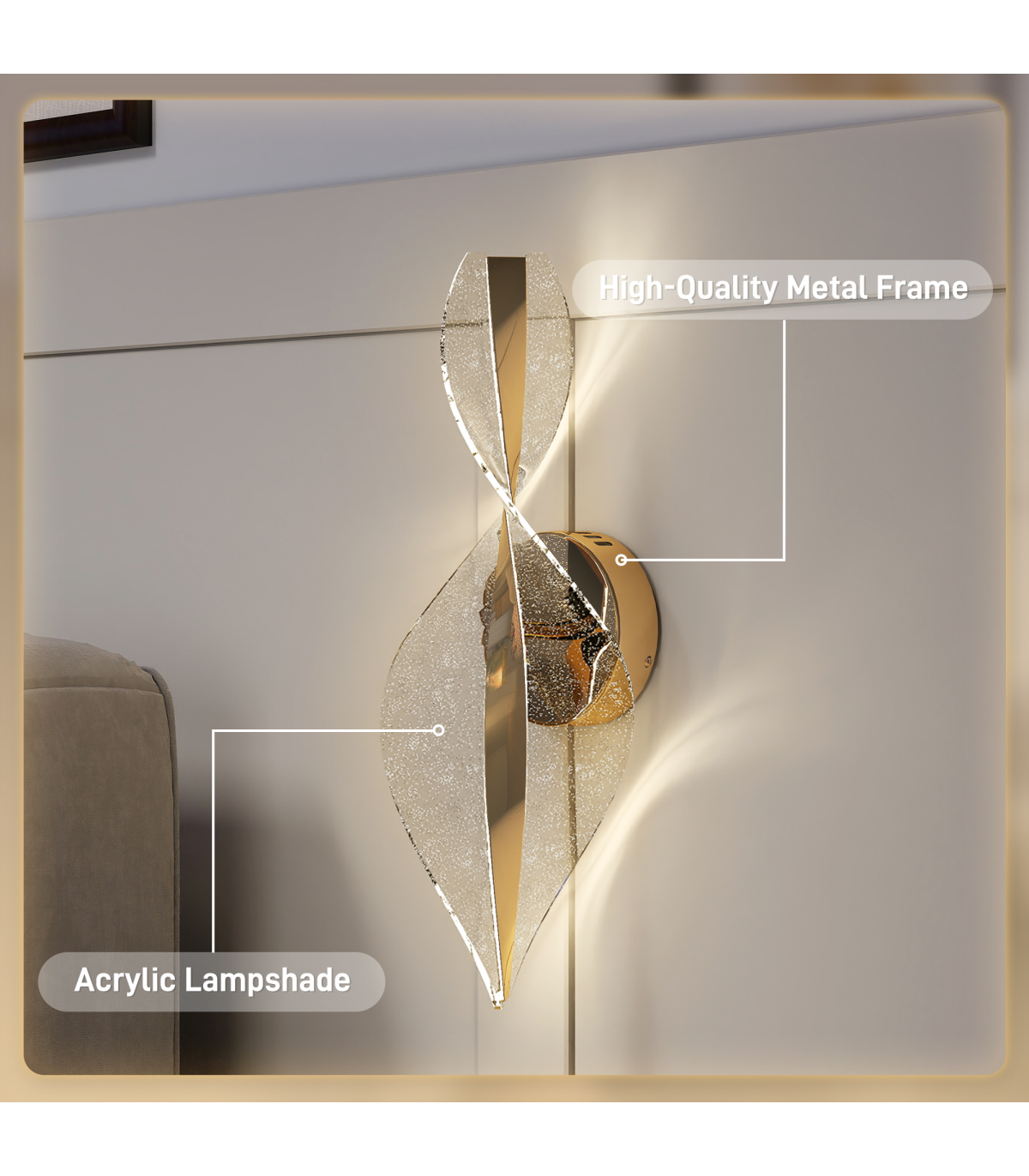 HOMCOM Led Wall Lamp 2 Pack, Modern Indoor Spiral Wall Light, Gold