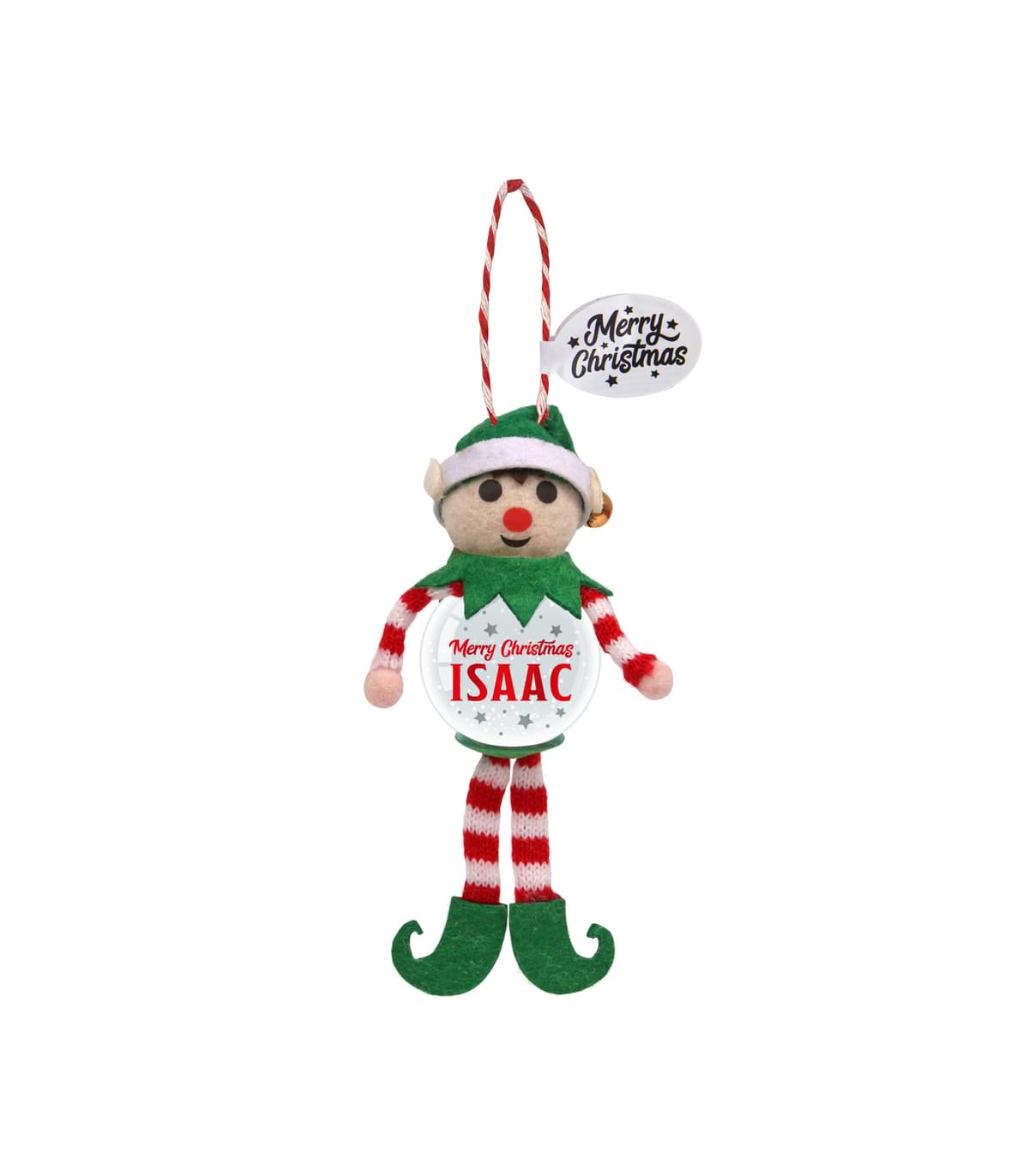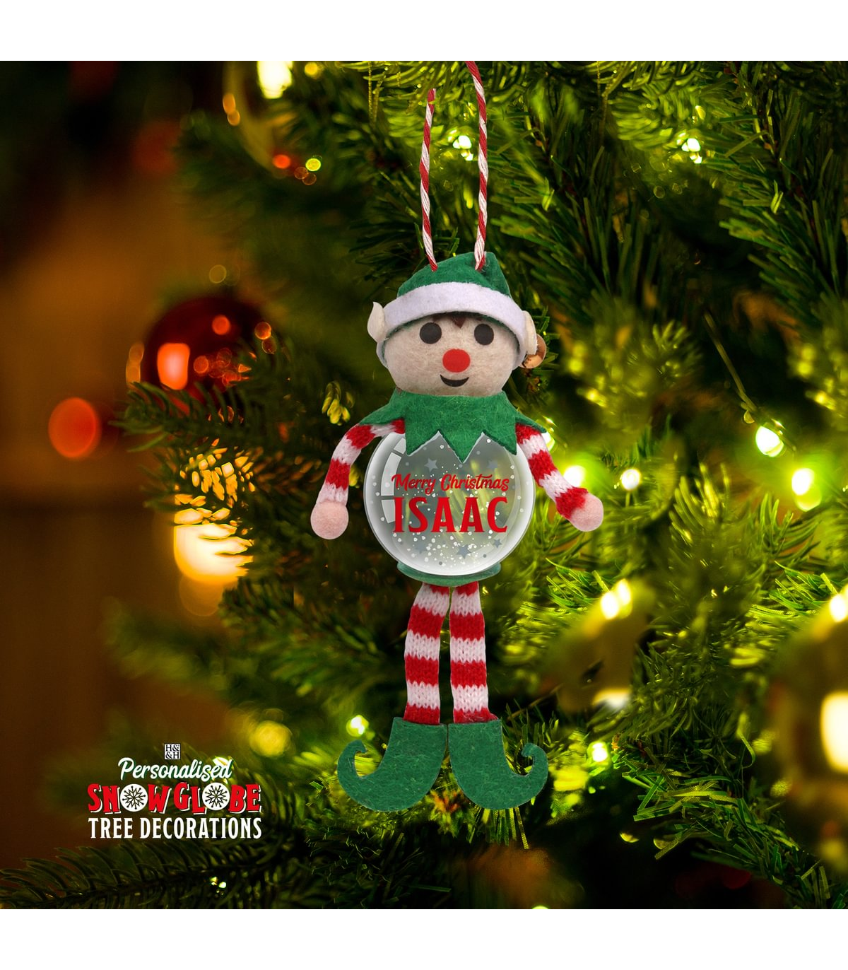 Pre-personalised Snowglobe Santa Elf Christmas Tree Decoration - Isaac