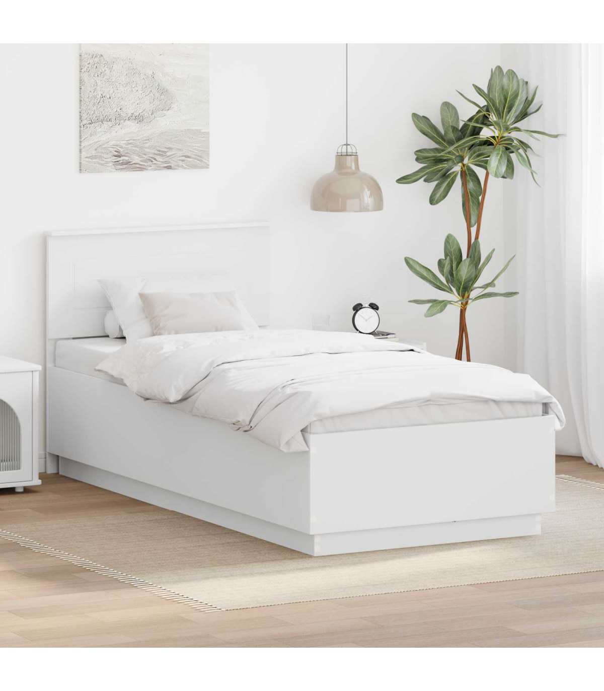 vidaXL Bed Frame with Headboard White 100 x 200 cm Engineered Wood