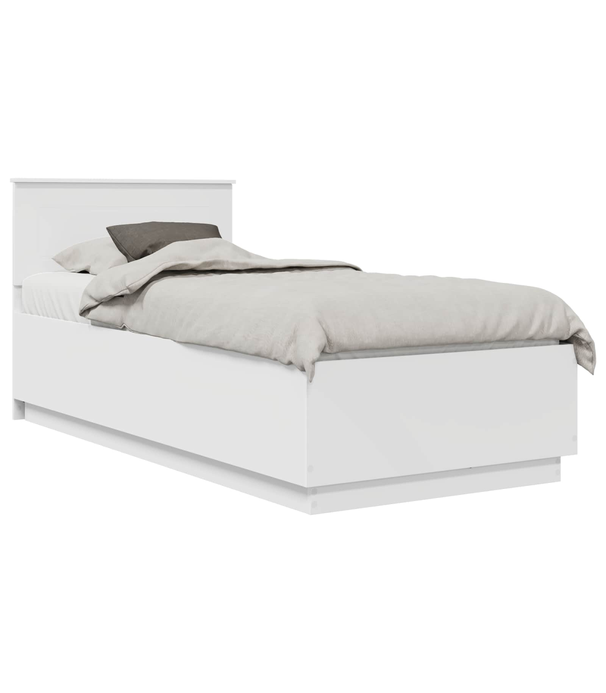 This modern bed frame will transform your bedroom with its sleek and contemporary design. Its frame, precision-crafted from engineered wood, offers a clean, minimalist look perfectly suited for any modern setting. Designed to enhance your sleeping experience, the bed features an adjustable headboard and calming LED strip lights for a beautifully illuminated backdrop –setting a delightful mood for relaxation. Materials: The bed frame is constructed from high-quality engineered wood, known for its strength and resistance to warping. This material choice ensures a consistent appearance and integrity, enhancing the modern aesthetic of your bedroom while providing stability and durability. Included Components: The bed comes complete with an adjustable, wall-mounted headboard that provides customizable support and an integrated storage solution. LED strip lights enhance the frame, offering ambient lighting options, while a handy USB plug allows for device charging right from the comfort of your bed. Features /Function /Design: An adjustable headboard provides personalized comfort, supporting various sitting positions for reading or relaxing. The USB port supports convenient gadget charging without messy cables, while multicolor LED lights add a touch of elegance and personalization to your space. Recommended Uses: Perfect for modern, minimalist bedroom settings, this bed frame's stylish appearance can transform any bedroom into a contemporary haven. Its adaptability makes it suitable for tech-savvy users who appreciate integrated electronics and a versatile sleeping environment. Care &Maintenance: To maintain the bed’s pristine look, simply wipe down with a damp cloth. This straightforward care requirement ensures the bed remains a visually appealing centerpiece while extending its lifespan.