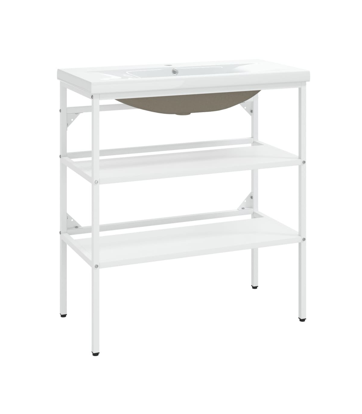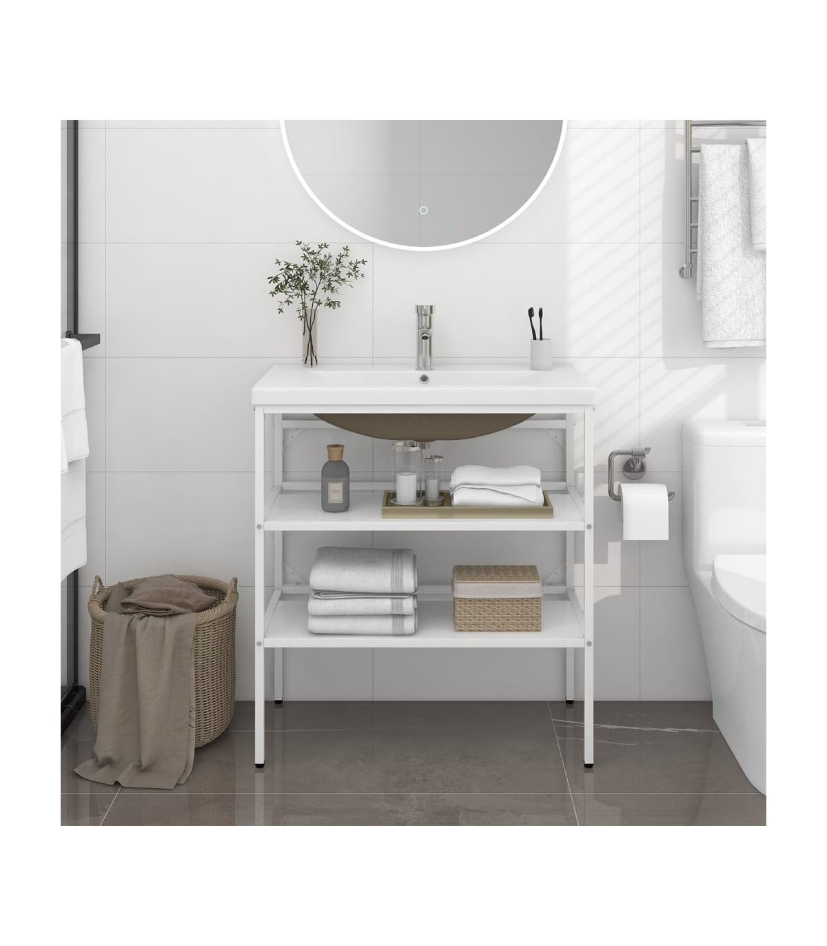 Bathroom Washbasin Frame with Built-in Basin White Iron