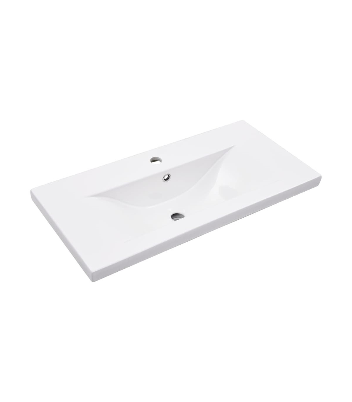 This bathroom washbasin frame with a bulid-in basin is a perfect match for your bathroom or washroom with a clean, tidy appearance. The wash stand is made of powder-coated iron, making it stable and durable. This washbasin frame gives easy access to towels and baskets and creates a more ample space than closed storage. Made of ceramic, the basin can not only serve as a vessel for daily use but also as an adornment in your living space. Thanks to its trendsetting and contemporary design, this washbasin will definitely suit any decor. An overflow is also equipped to flow water out when it gets too full. Its glazed surface brings itself a modern yet elegant design. Additionally, the washbasin frame and basin are easy to clean with a damp cloth. Please note: The tap and the drain are not included in the delivery.
