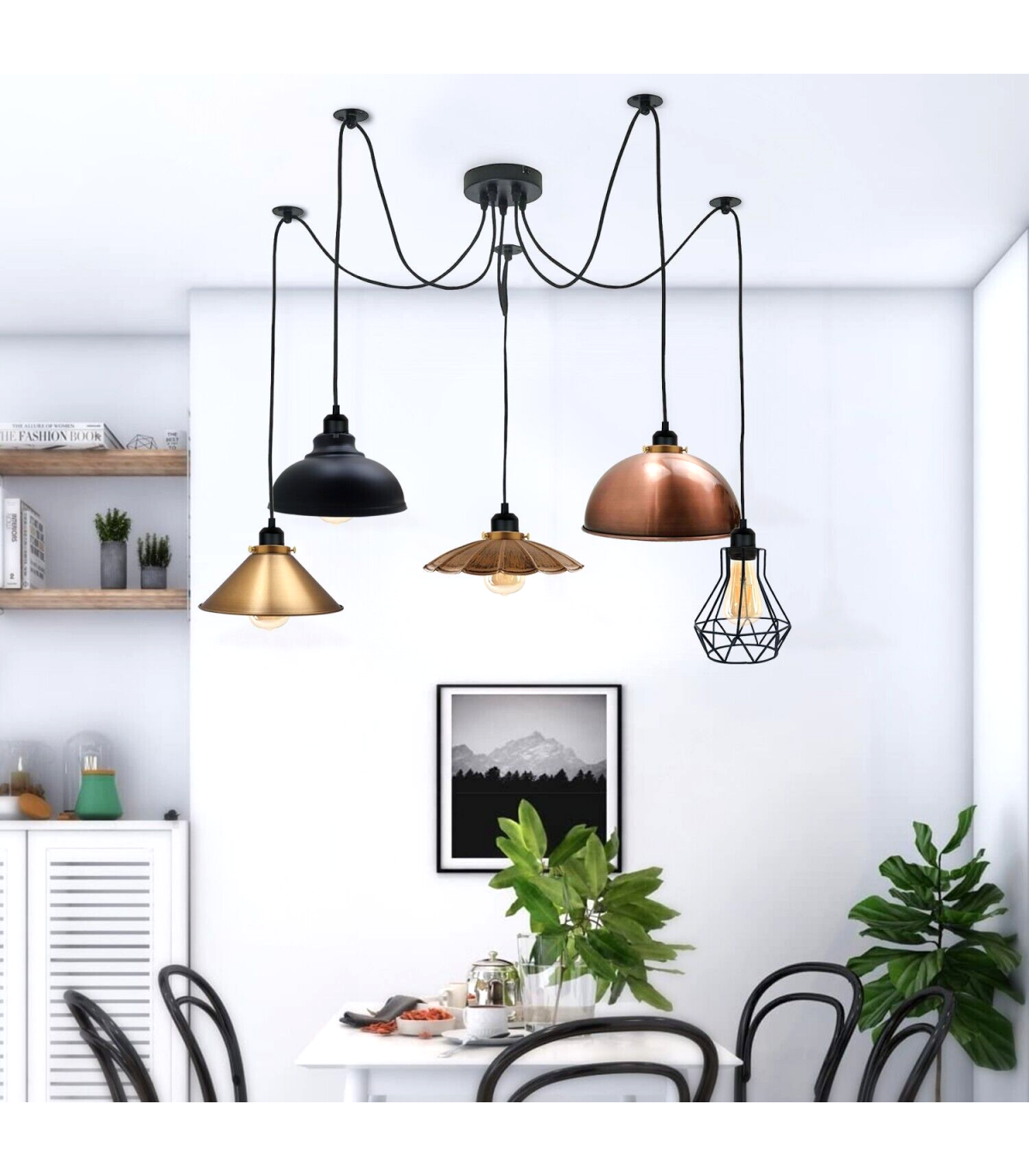 Retro Vintage Chandelier Ceiling Spider Light Industrial Pendant 5 Way DIY Lamp