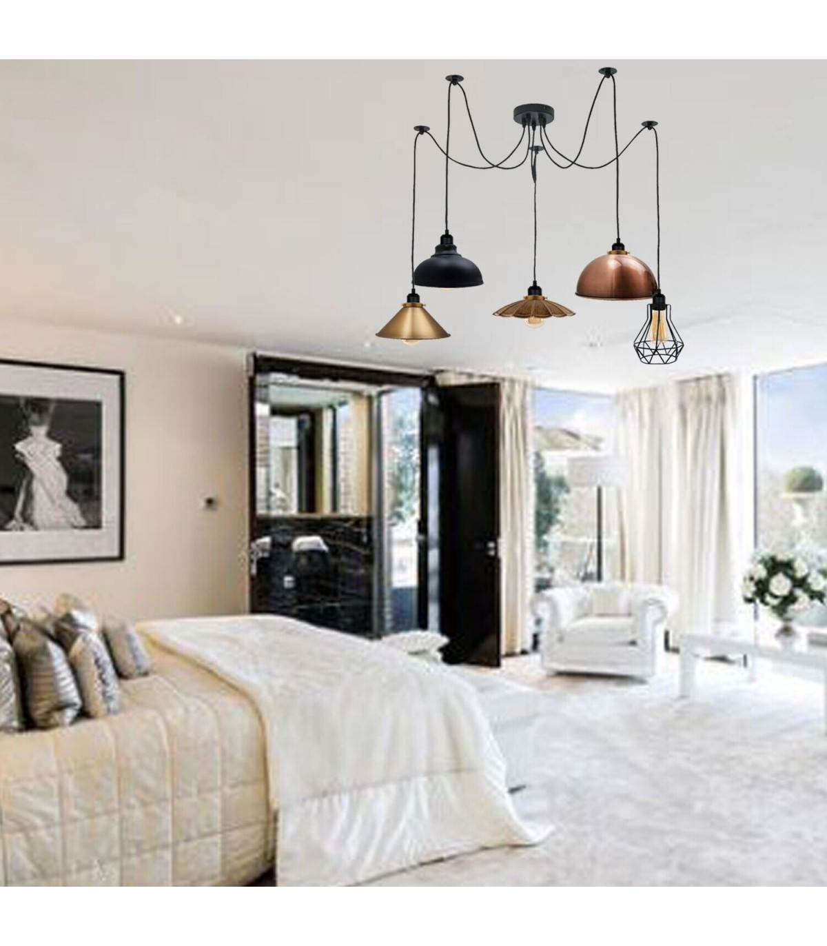 Retro Vintage Chandelier Ceiling Spider Light Industrial Pendant 5 Way DIY Lamp