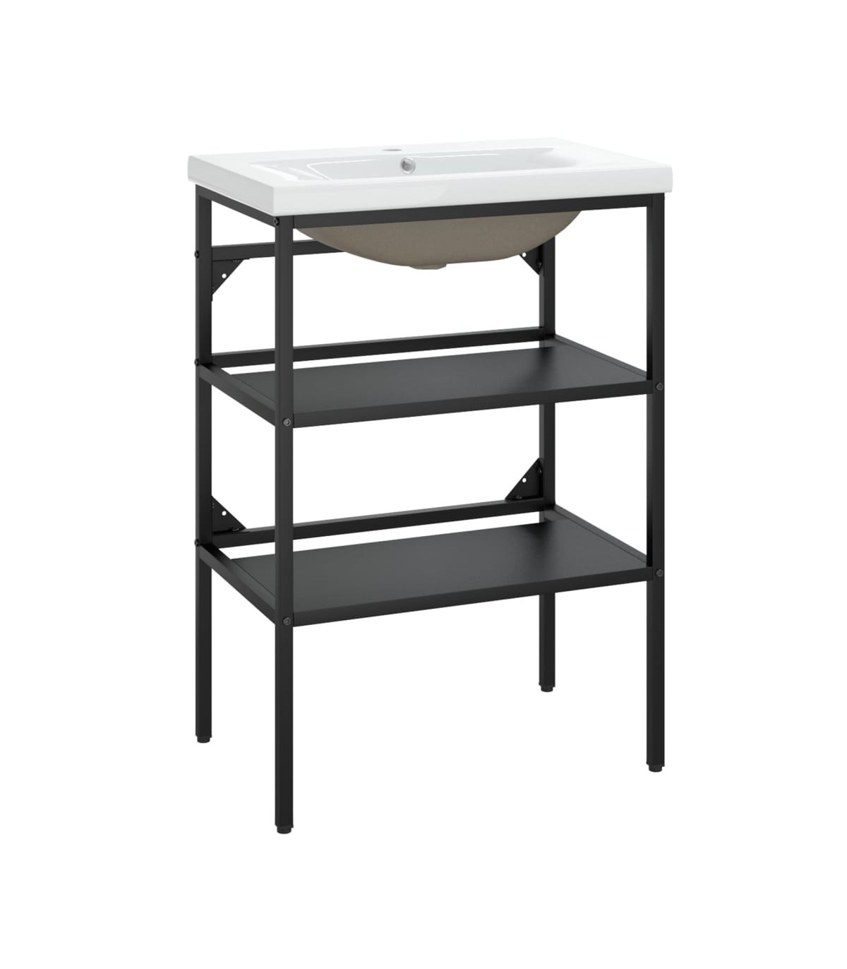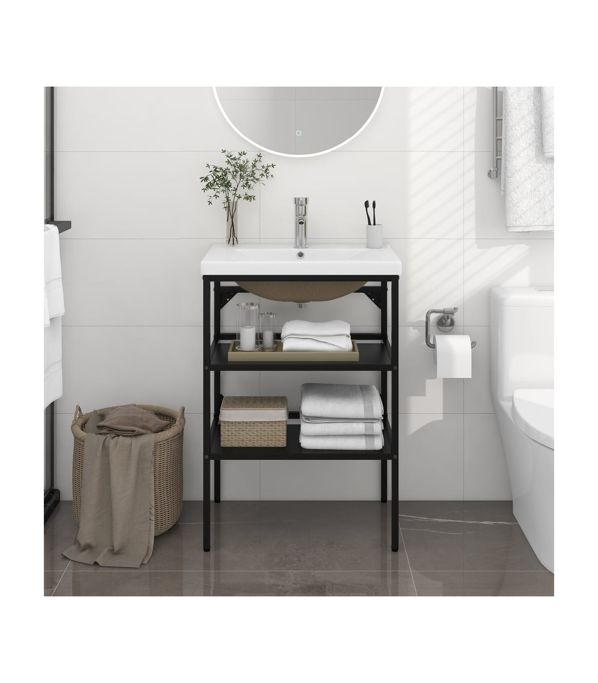 Bathroom Washbasin Frame with Built-in Basin Black Iron