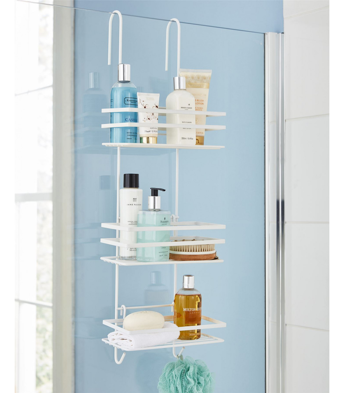 Various hanging and overdoor shower caddies. Available in a selction of colours, sizes and finishes