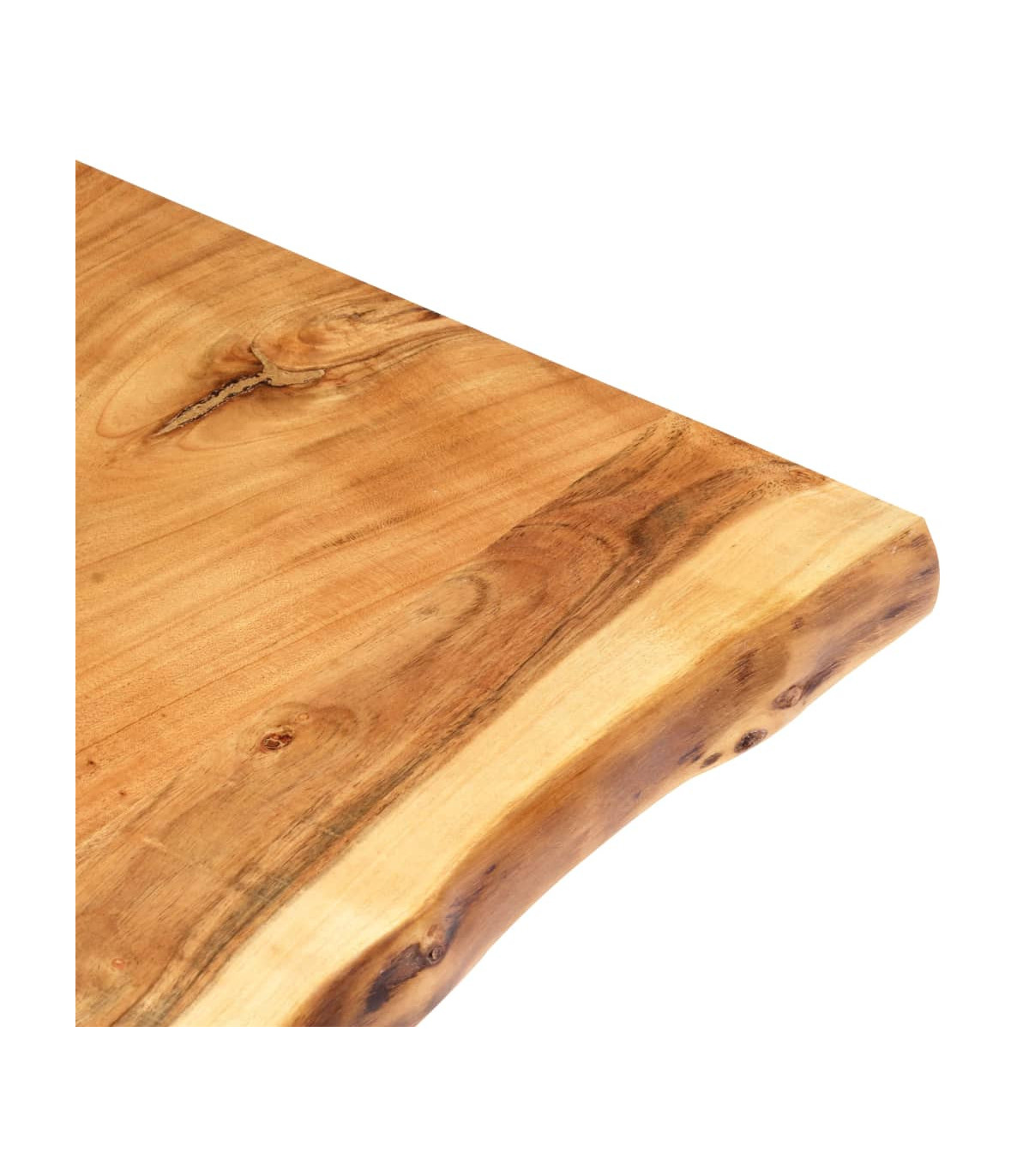 This spectacularly simple live edge wooden tabletop brings style and function to your existing tables like kitchen tables, coffee tables, desks, etc. This kitchen tabletop is made of solid acacia wood, a tropical hardwood, which is dense, sturdy and durable. The solid acacia wood has been polished, painted and lacquered to seal it and protect it from moisture. This kitchen tabletop is crafted from tree trunk and features a live wood edge, which preserves the beauty of the wood. Each of our table tops is unique. Wood grains and edges may vary slightly.