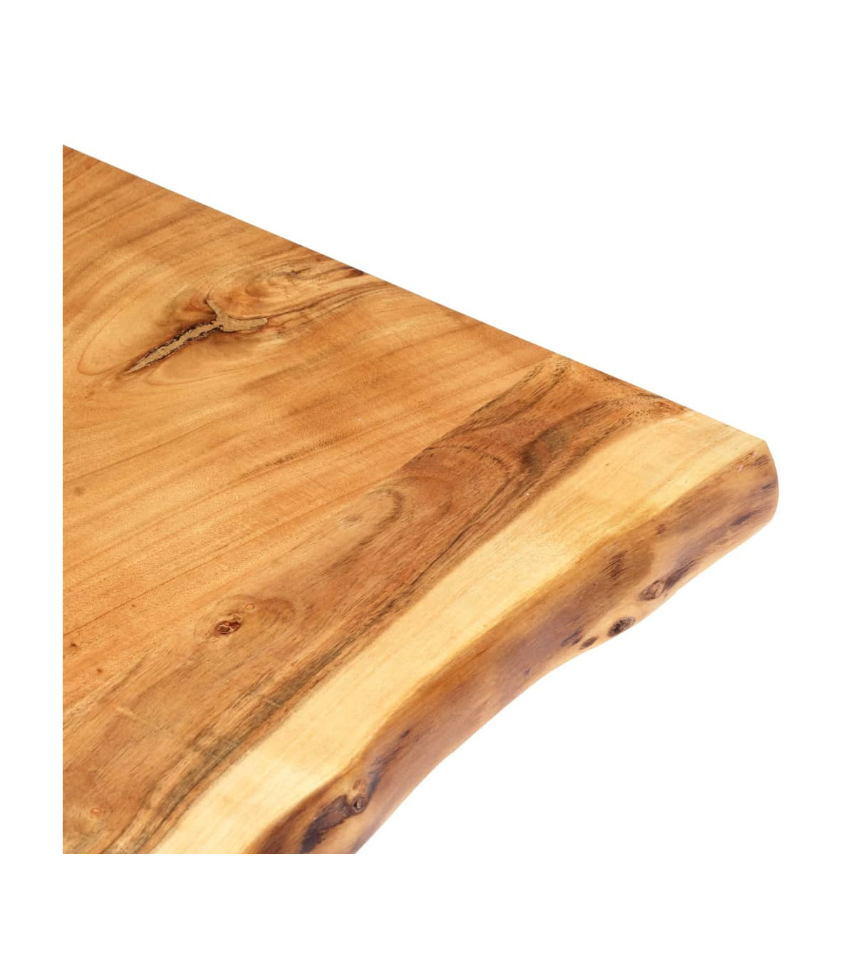 This spectacularly simple live edge wooden tabletop brings style and function to your existing tables like kitchen tables, coffee tables, desks, etc. This kitchen tabletop is made of solid acacia wood, a tropical hardwood, which is dense, sturdy and durable. The solid acacia wood has been polished, painted and lacquered to seal it and protect it from moisture. This kitchen tabletop is crafted from tree trunk and features a live wood edge, which preserves the beauty of the wood. Each of our table tops is unique. Wood grains and edges may vary slightly.