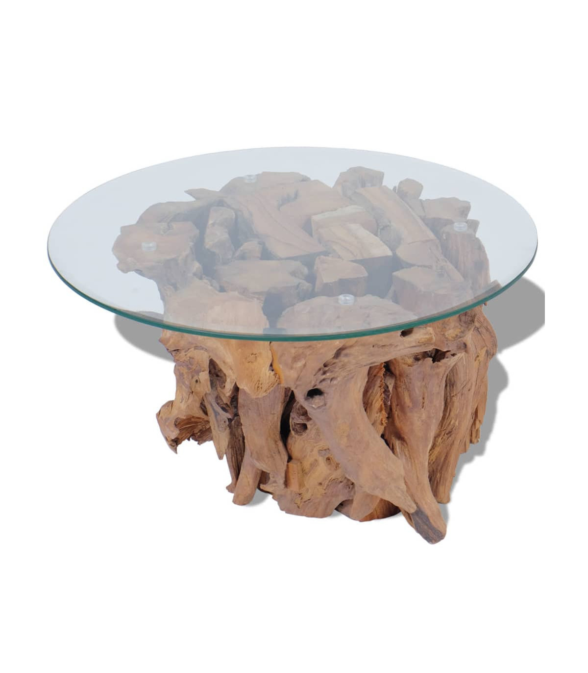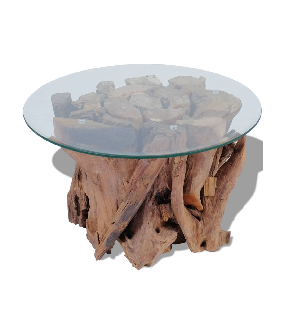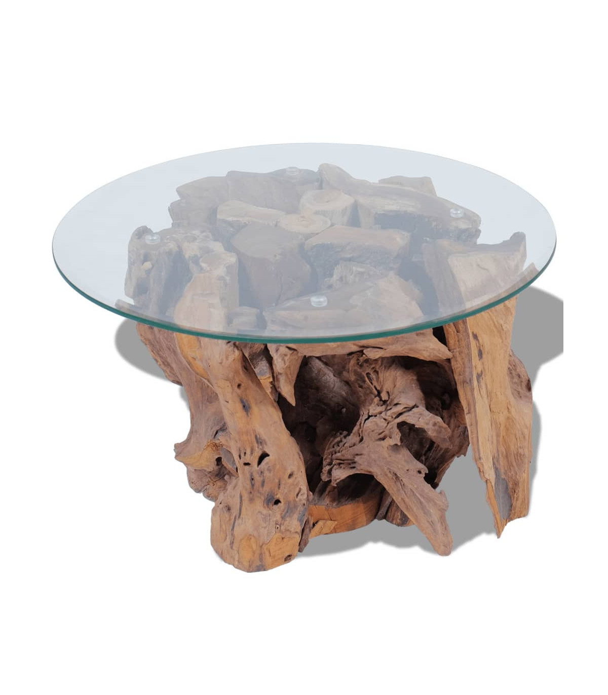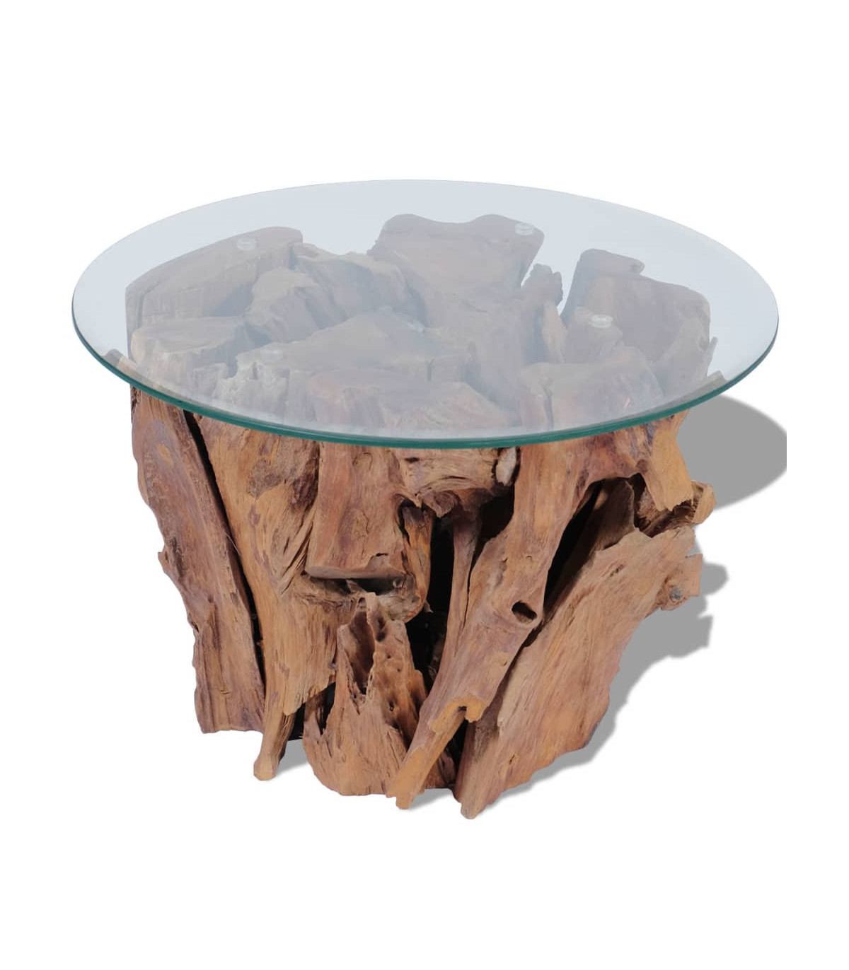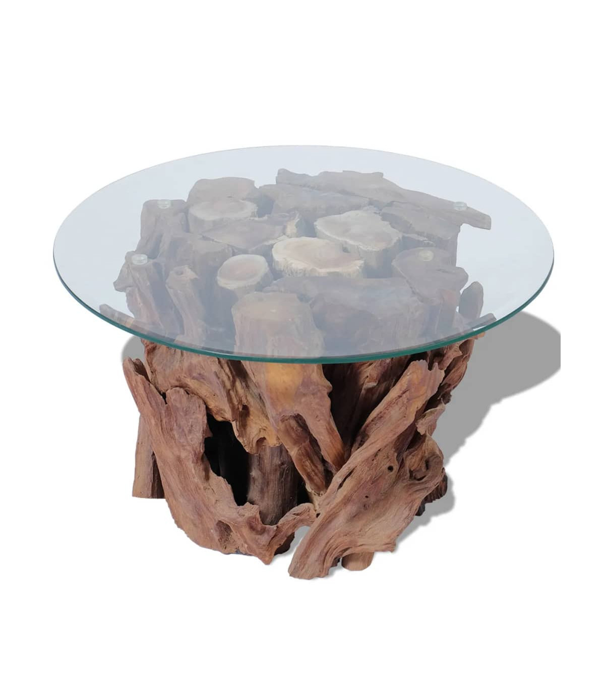 - Material: Solid teak driftwood base + tempered glass tabletop