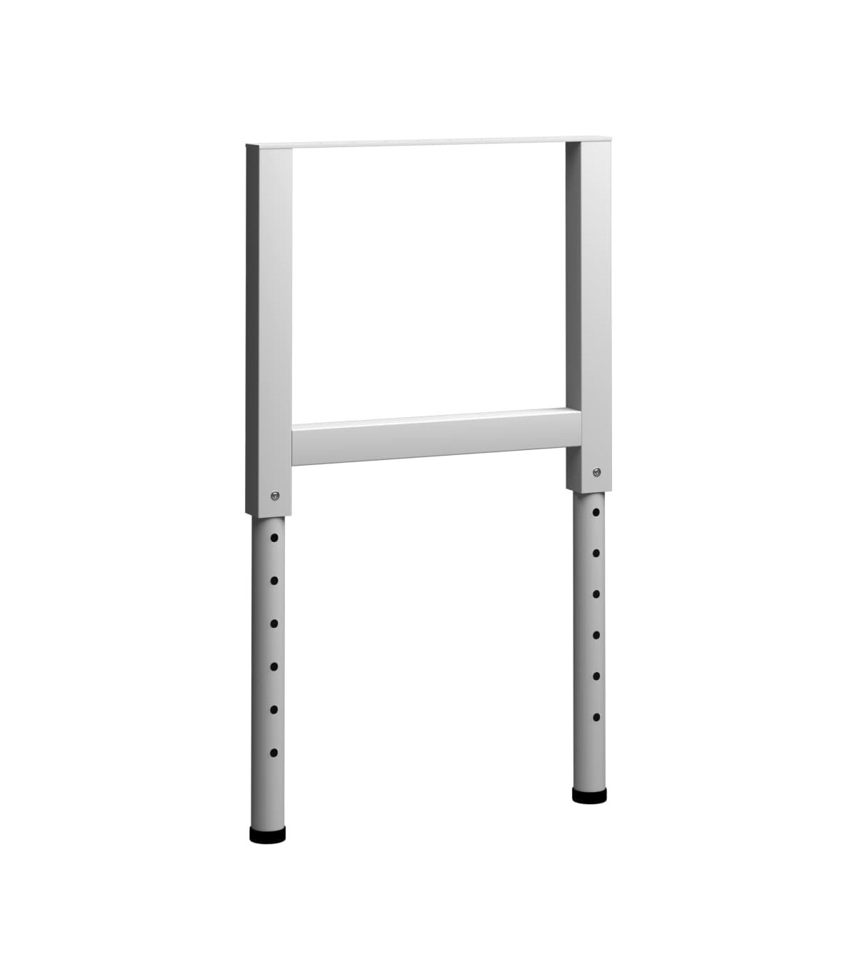 Create your own unique workspace with this metal workbench frames. With its powder-coated legs, the table frame is durable and can withstand heavy use. The height is adjustable from 69 to 95.5 cm to fit various work needs. Pre-drilled holes at the top allow you to attach any tabletop as per your needs easily.