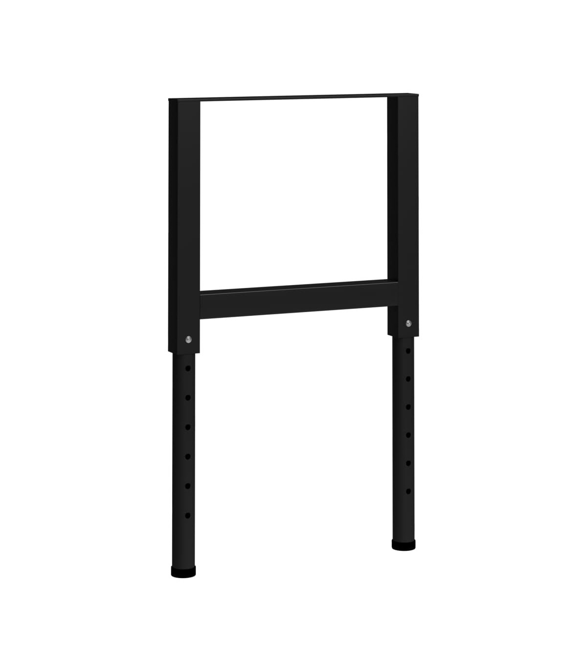 Create your own unique workspace with this metal workbench frames. With its powder-coated legs, the table frame is durable and can withstand heavy use. The height is adjustable from 69 to 95.5 cm to fit various work needs. Pre-drilled holes at the top allow you to attach any tabletop as per your needs easily.
