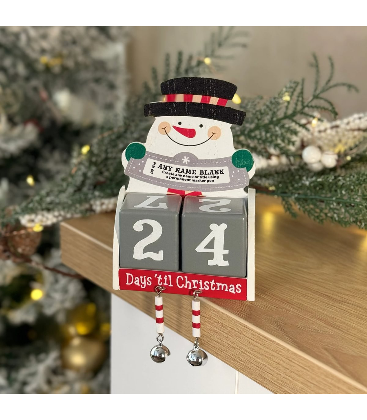 Pre-personalised Christmas Wooden Advent Block Calendar - Blank Snowman