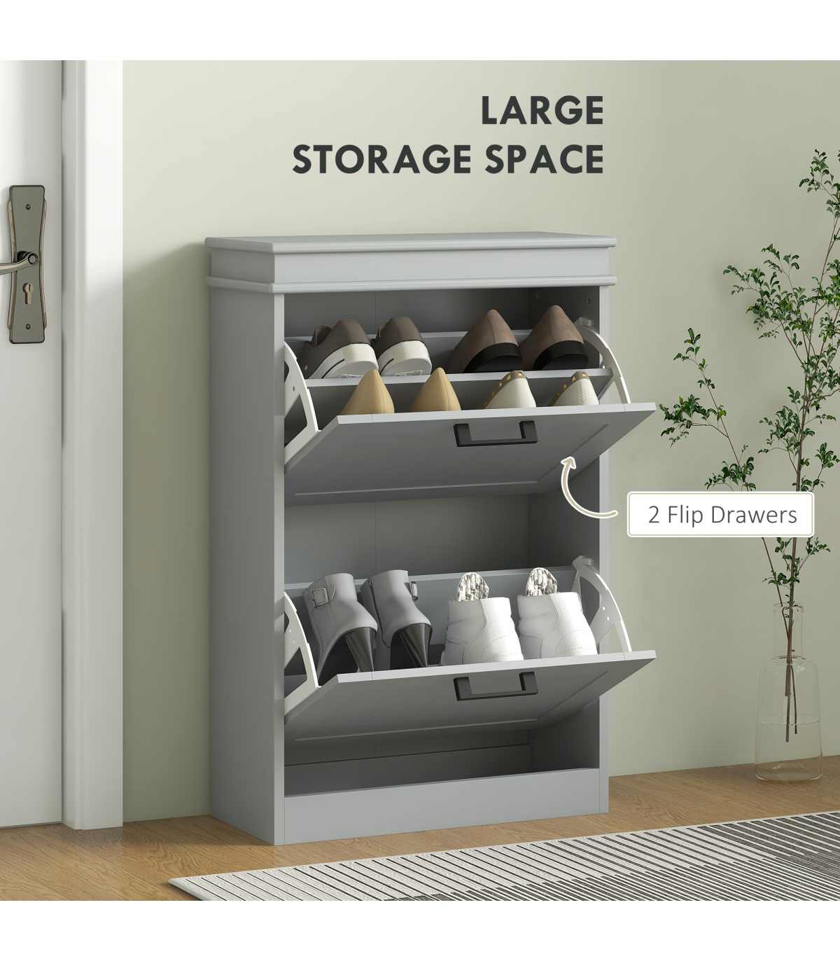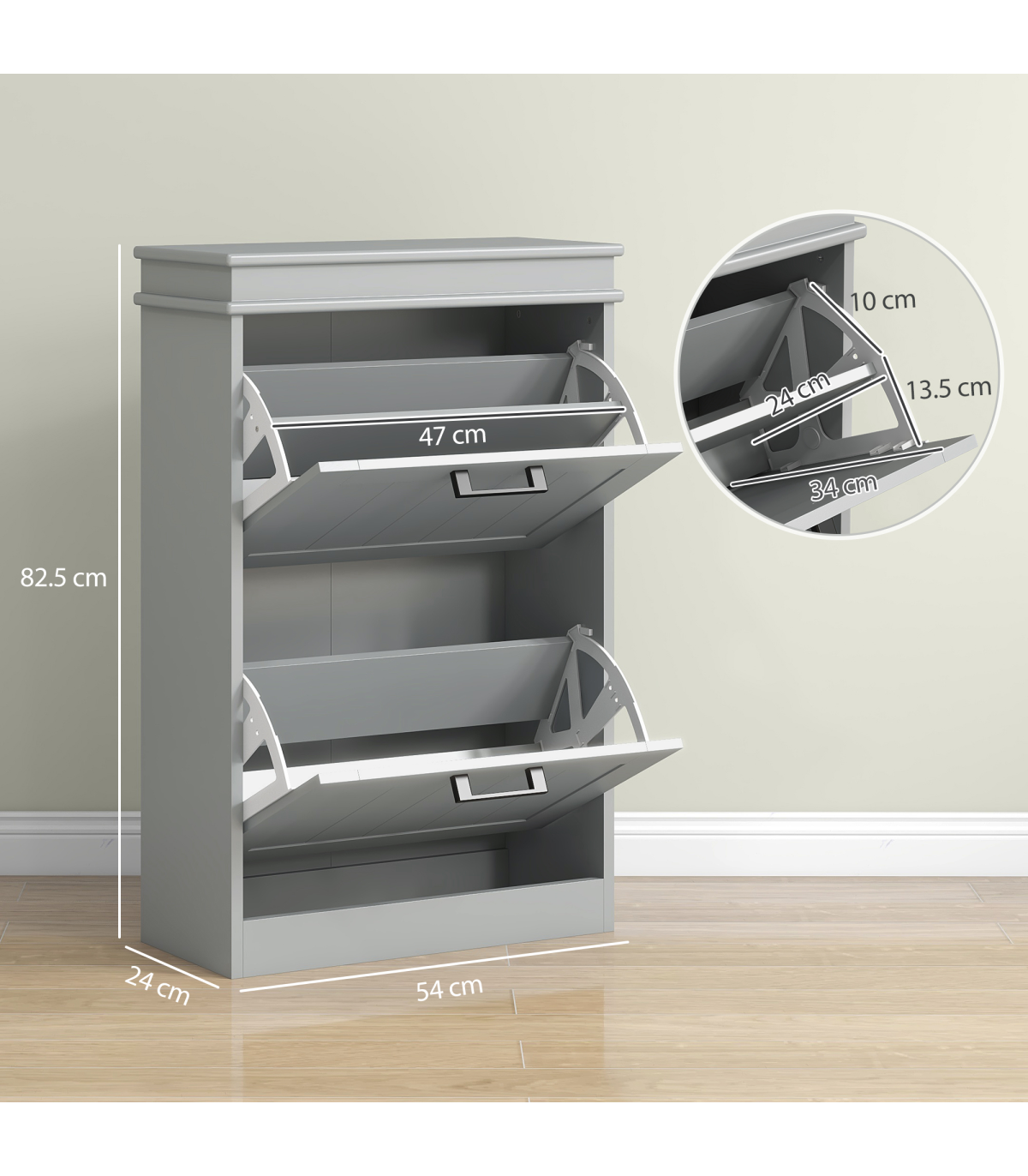 ? Two flip drawers: hallway storage unit holds maximum 10 shoe pairs. Maximum size: UK 9.5