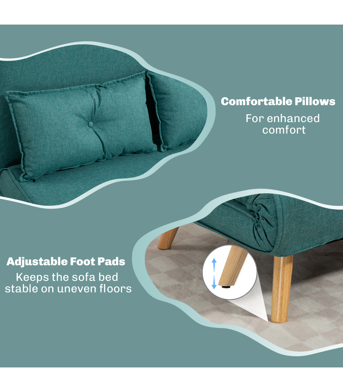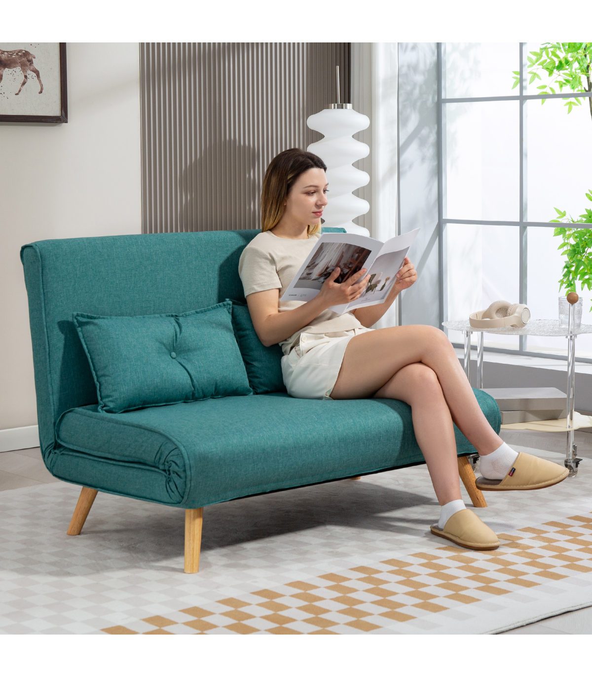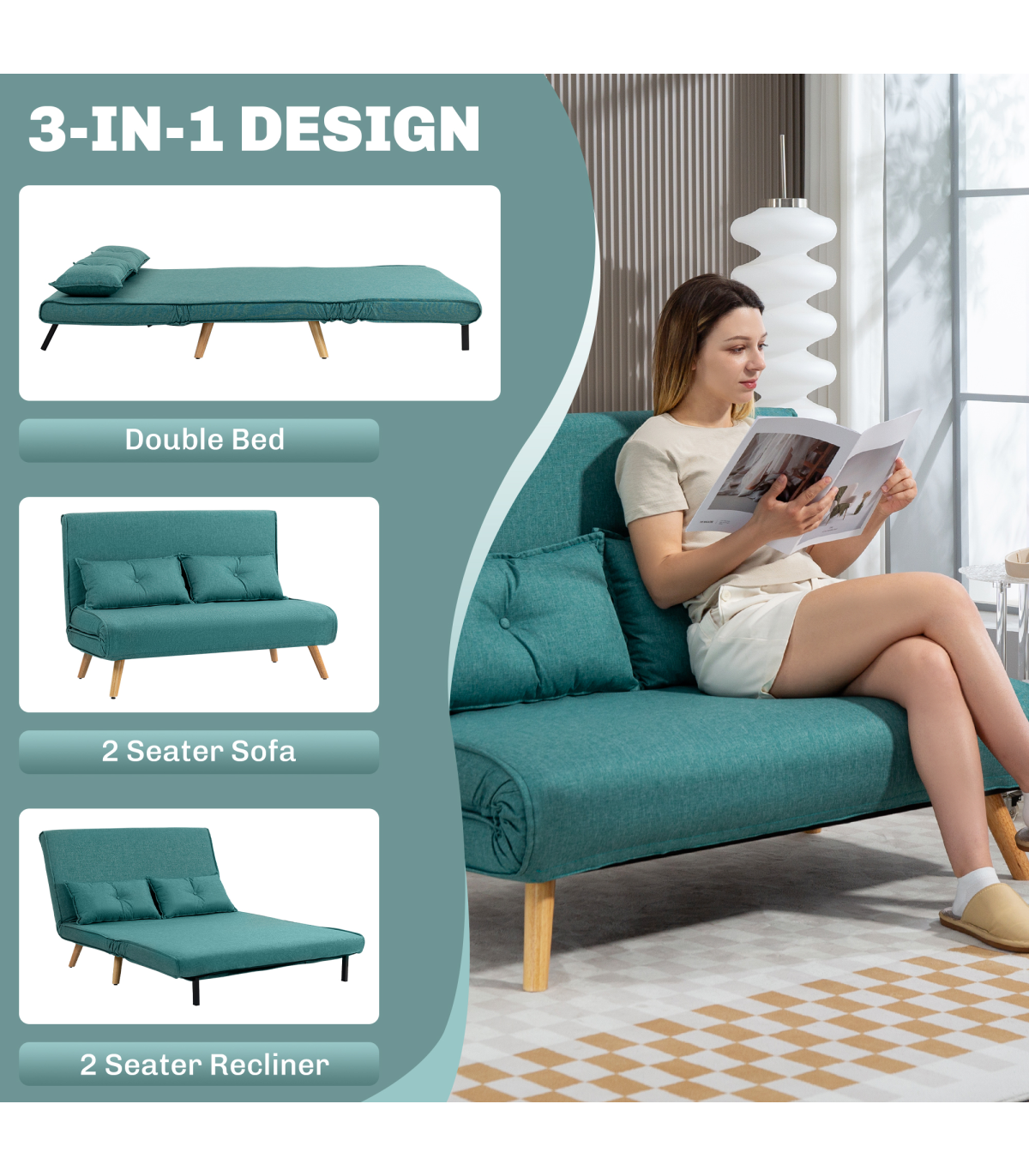 From sitting to sleeping, do it in style with this HOMCOM double sofa bed. Thanks to the click-clack mechanism, it's easy to move from the sofa into the bed - perfect for using from day through to night, and giving last minute guests a comfortable spot to rest overnight. You can also adjust the back to five different angles: lie back at the position you want. Filled with high-density foam for comfort, and complete with two pillows for added support.