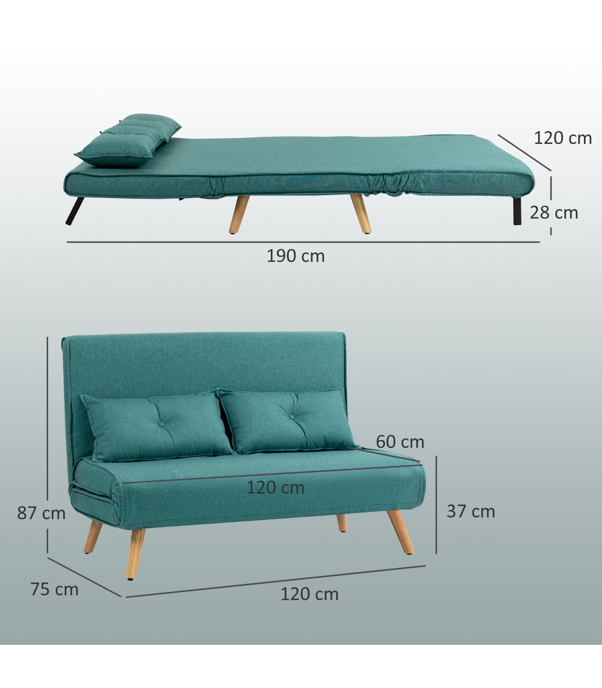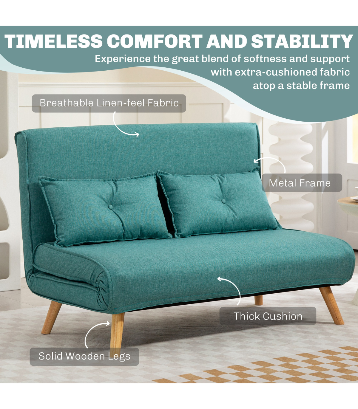 HOMCOM Click Clack Sofa Bed, 2 Seater Bed Settee for Living Room, Green