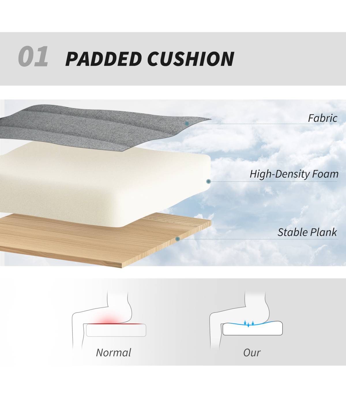 ? High-density foam padding ensures long-lasting comfort