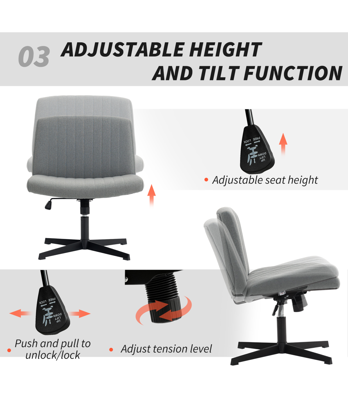 ? Adjust the seat height between 45-55 cm or enjoy the tilt function for gentle rocking to suit your needs