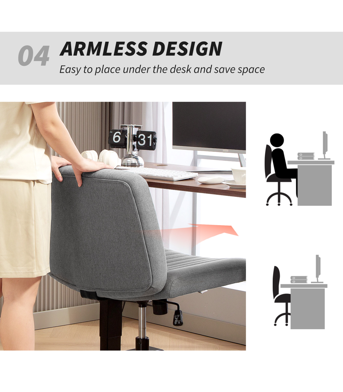 ? Sleek armless design conserves space effectively