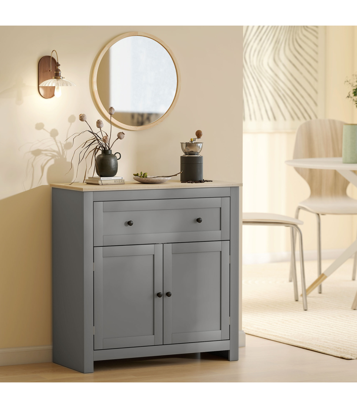 ? Versatile size fits as a sideboard storage cabinet in kitchen or bathroom