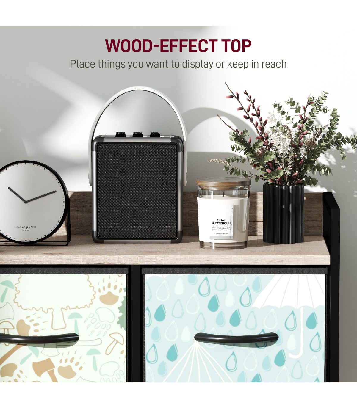 ? Wood-effect top for handy display space