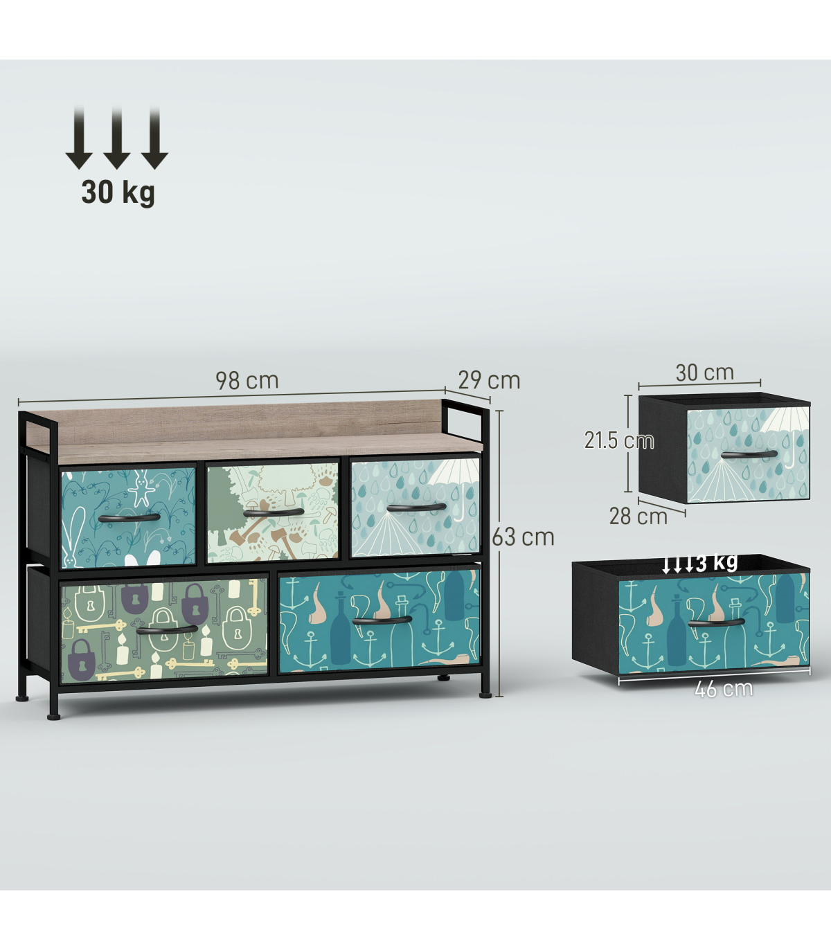? Weight Capacity: 25 kg (overall), 15 kg (top), 3 kg (each drawer)