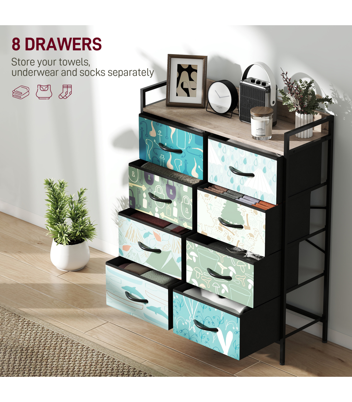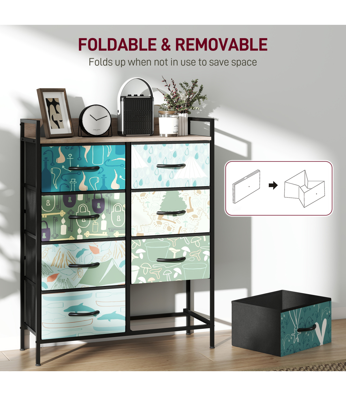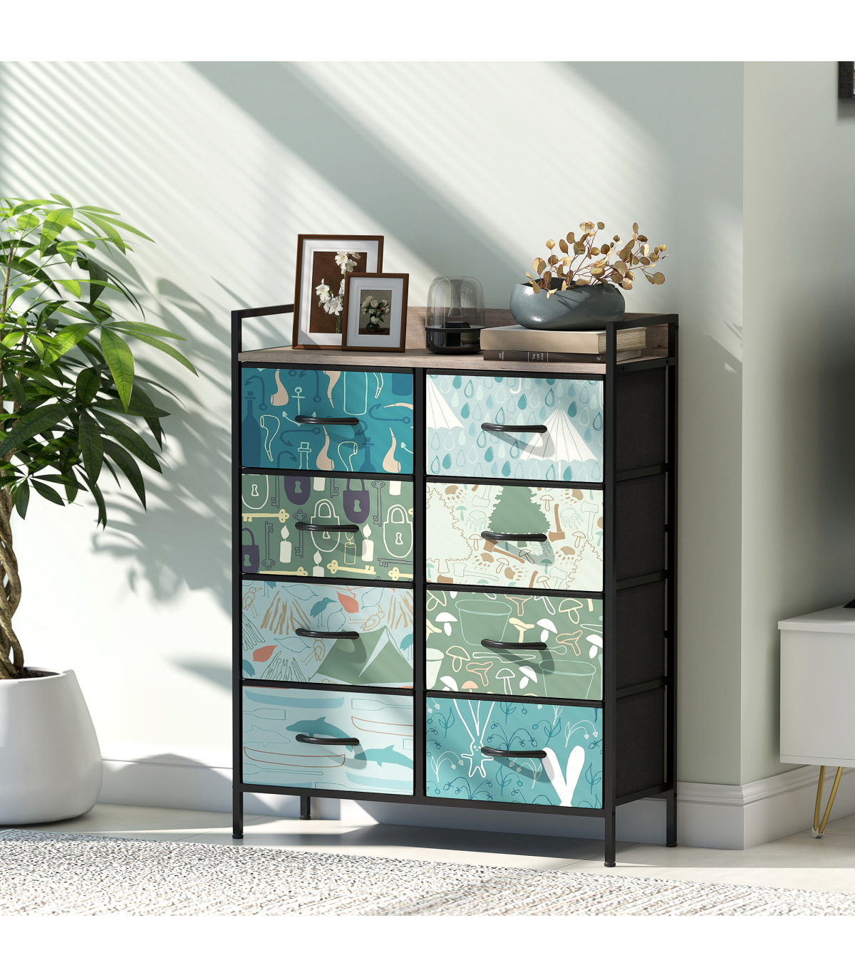 HOMCOM 8-Drawer Chest of Drawers, Fabric Dresser with Open Shelf, Blue