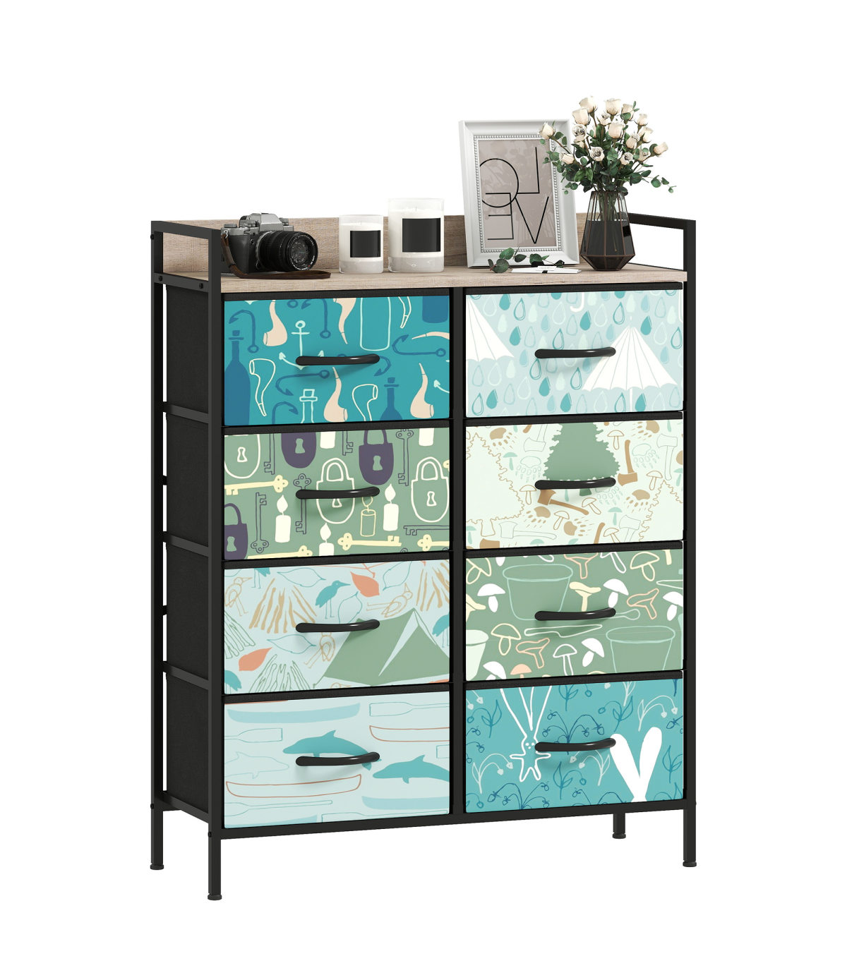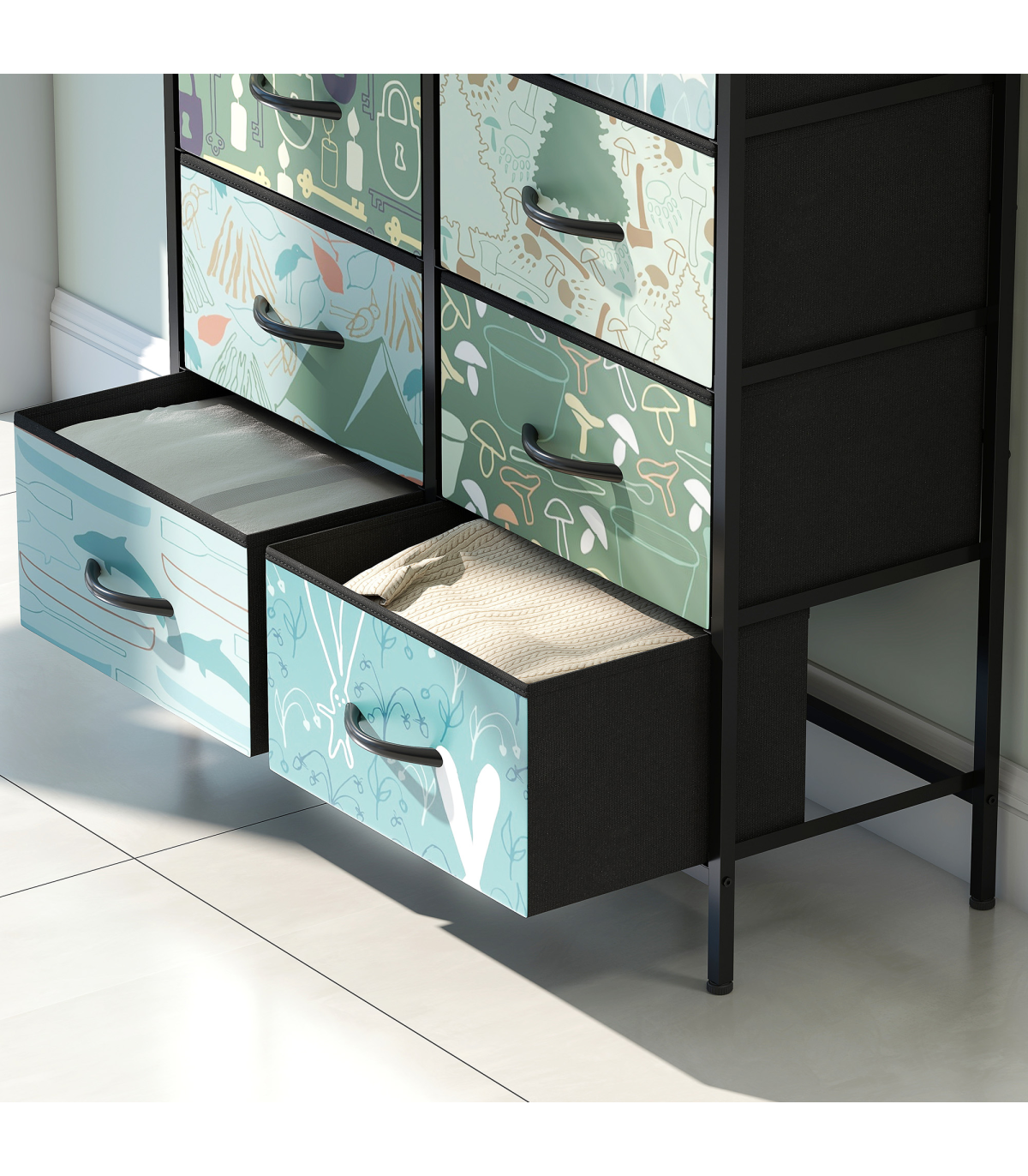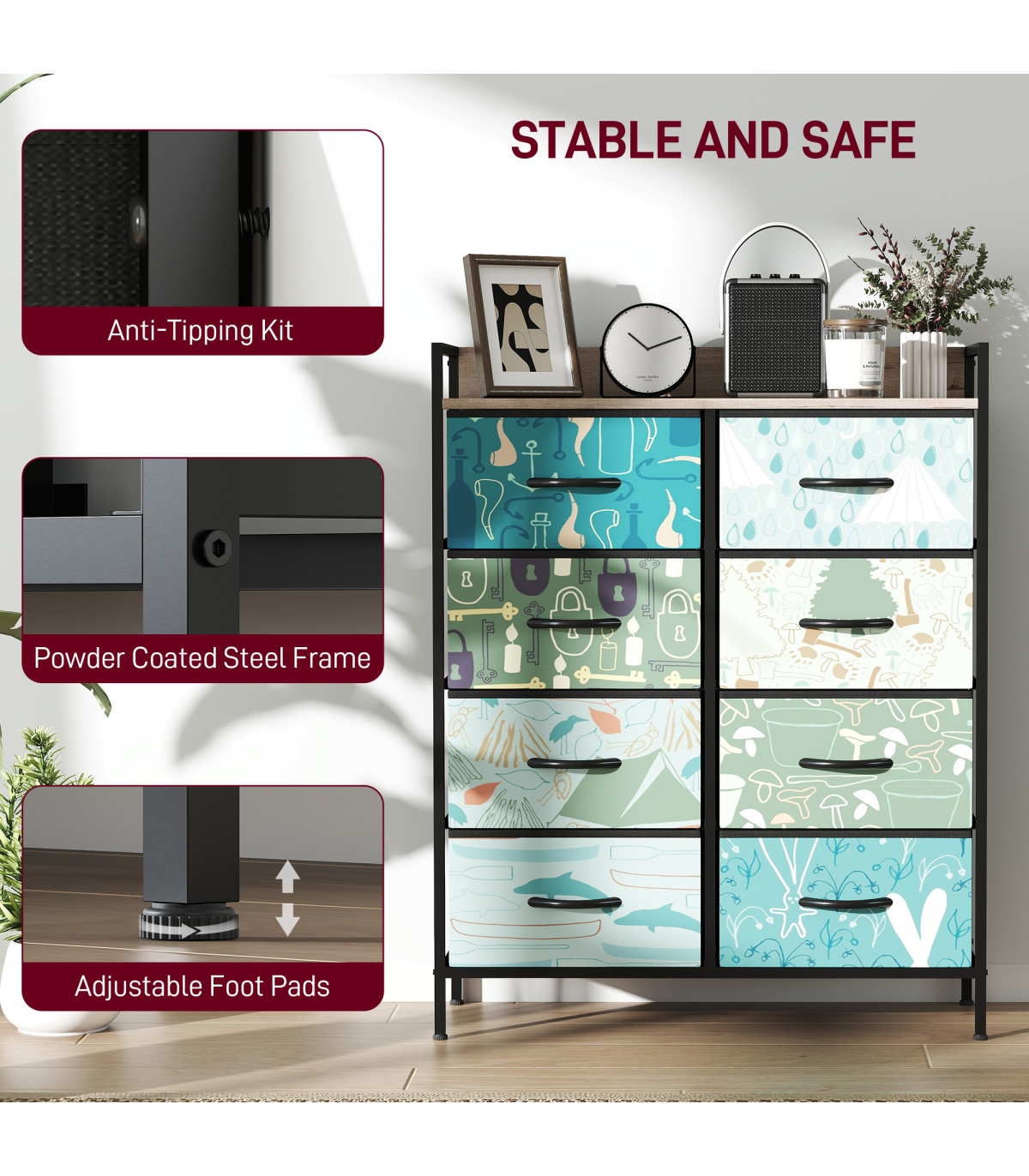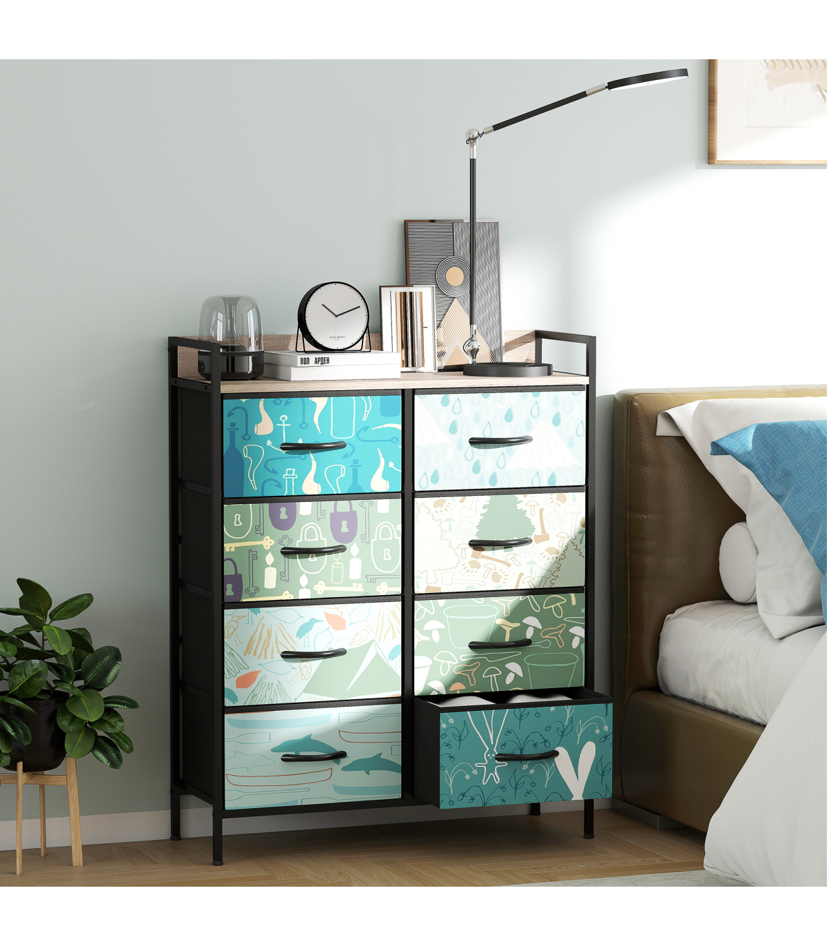 HOMCOM 8-Drawer Chest of Drawers, Fabric Dresser with Open Shelf, Blue