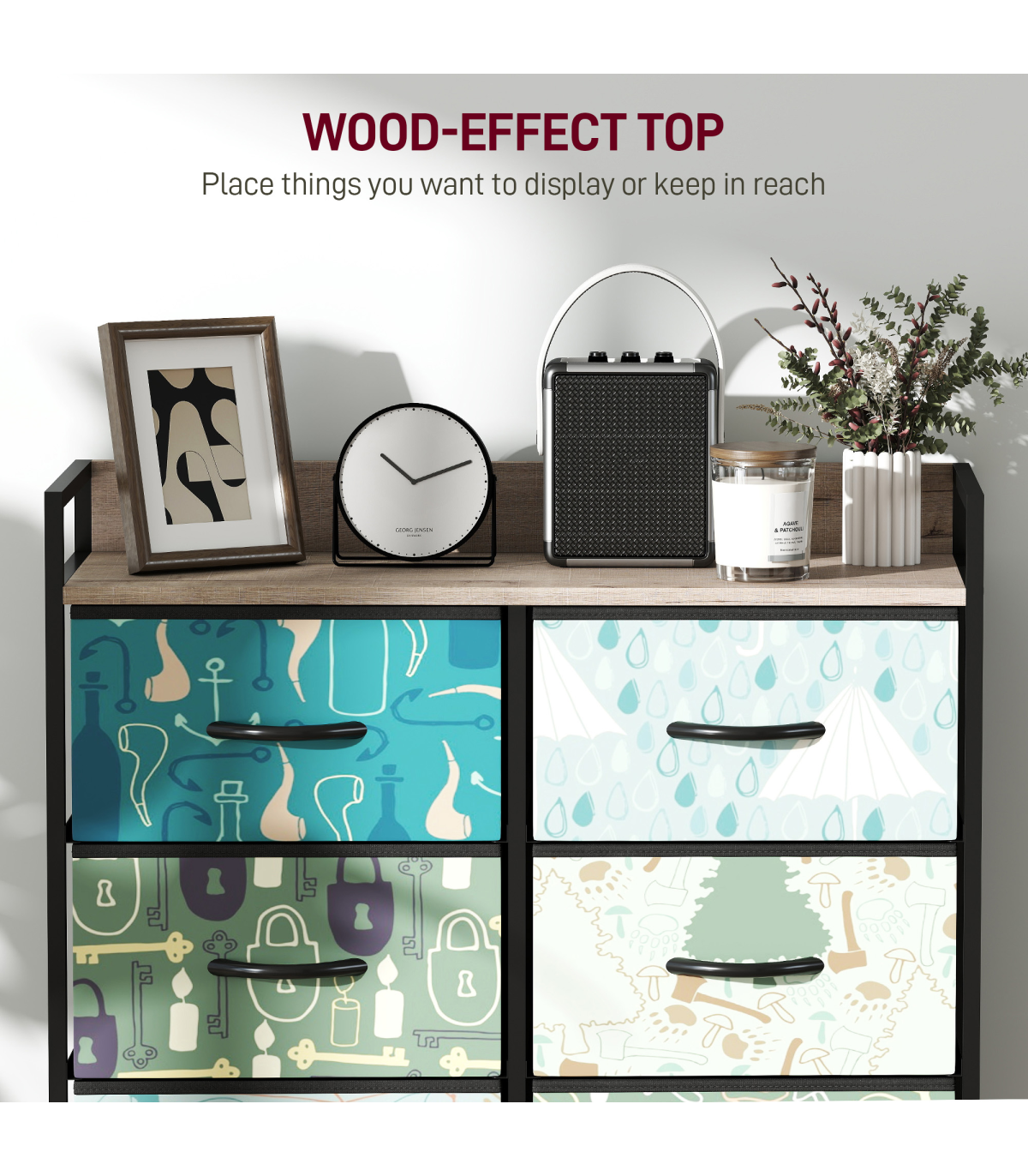 Transform your space with the HOMCOM chest of drawers, where style meets functionality! Adorned with exquisite patterns on each drawer panel, this bedroom drawers add a touch of elegance to any room. With four fabric drawers that are both removable and foldable, organising has never been easier. Great for bedrooms, living rooms, or home offices to keep your essentials tidy.