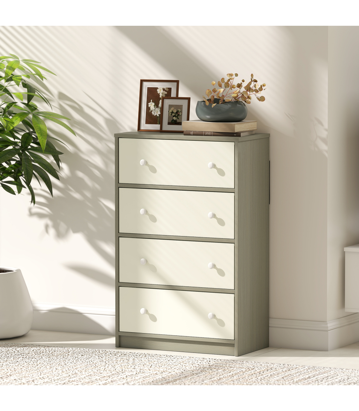 HOMCOM Chest of Drawers, 4 Drawer Dresser for Bedroom, White and Grey
